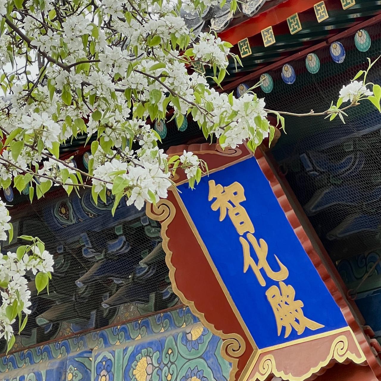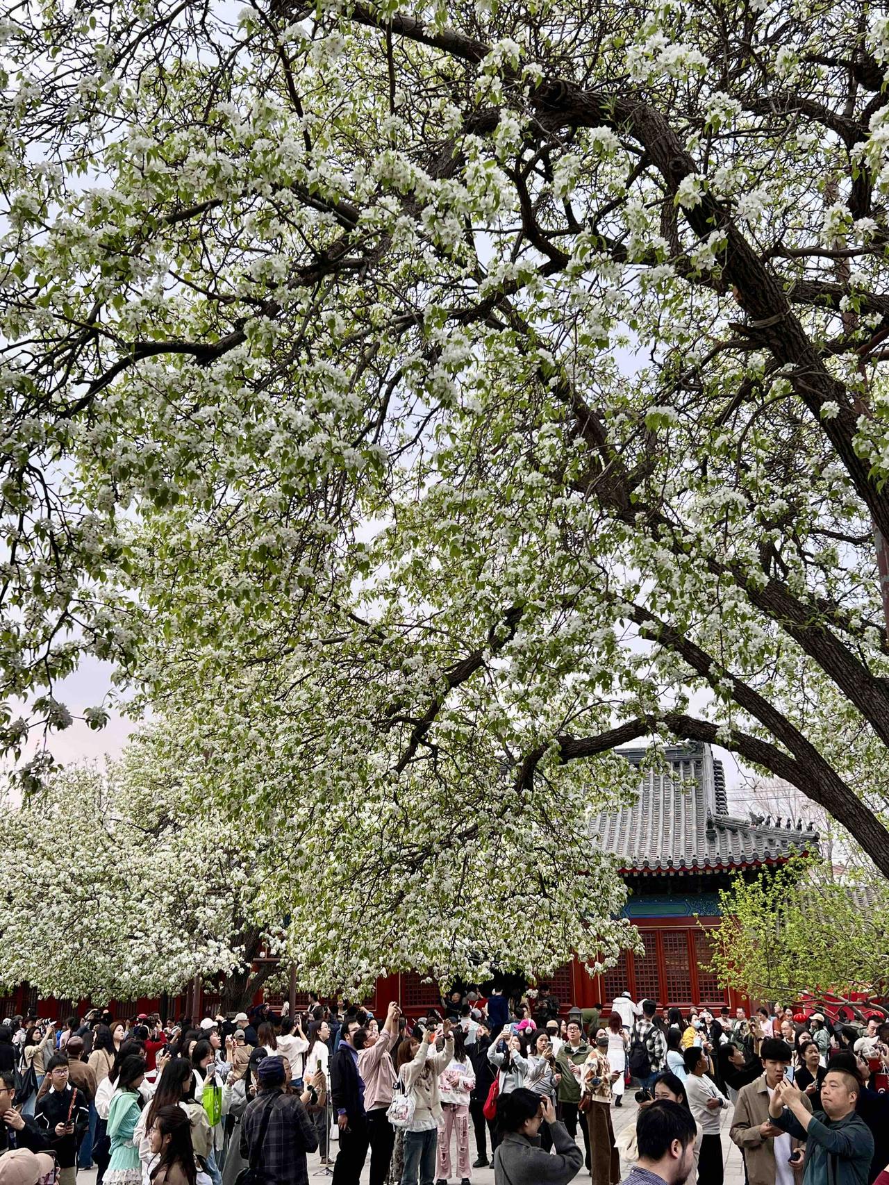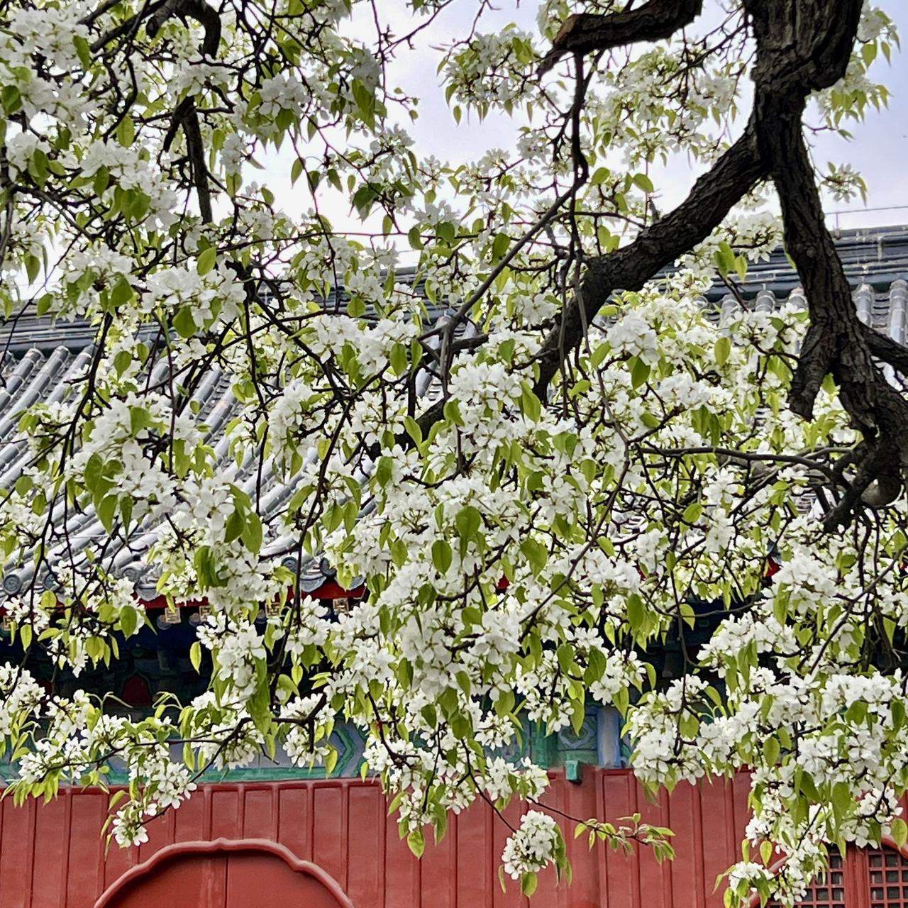 京城智化寺两株五百年梨树暮春盛开。梨花依旧开如雪,不见当年赏花人。