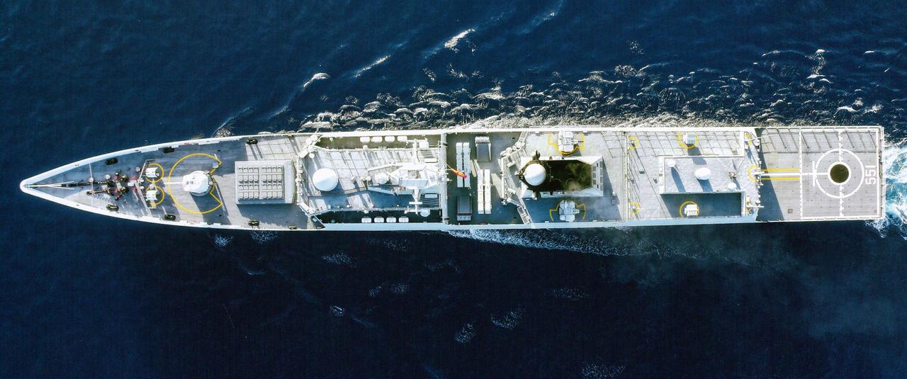 [呲牙] 两种“新青年”——054A型 和054B型 护卫舰的俯视对比图。
