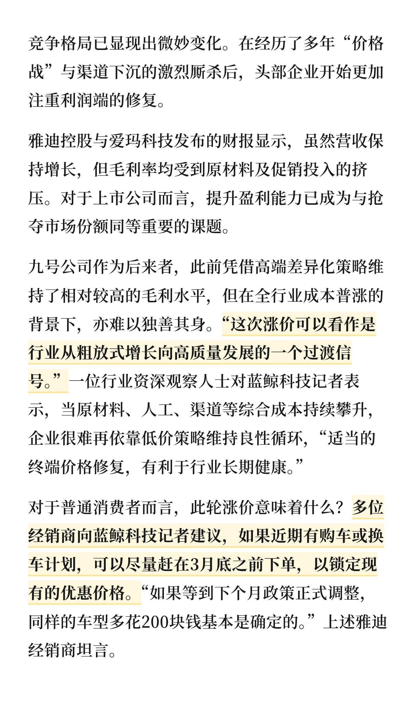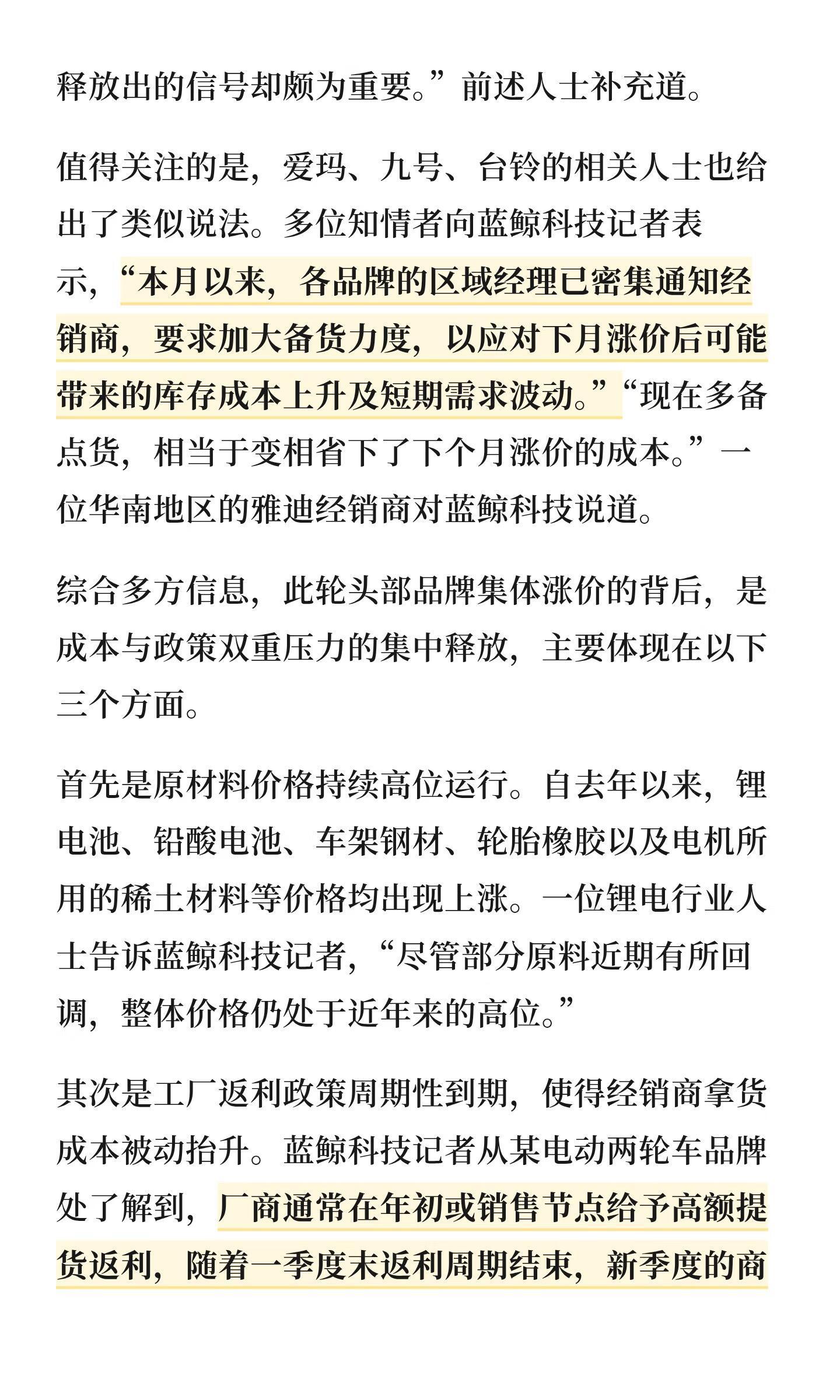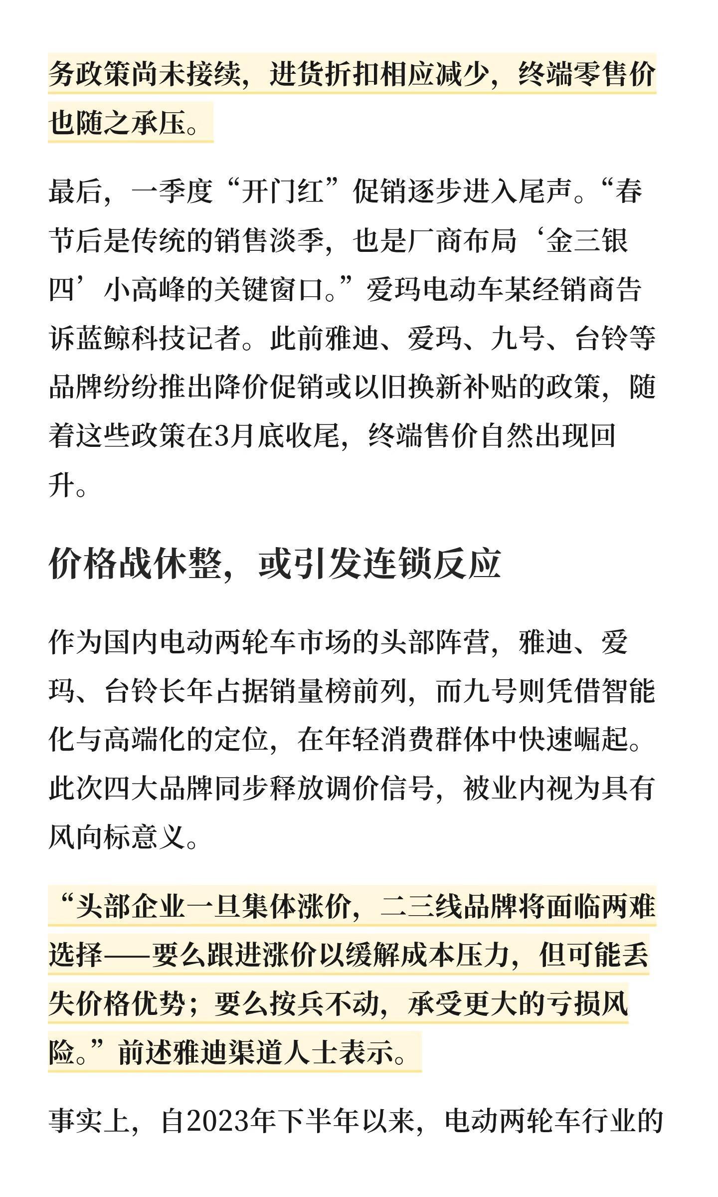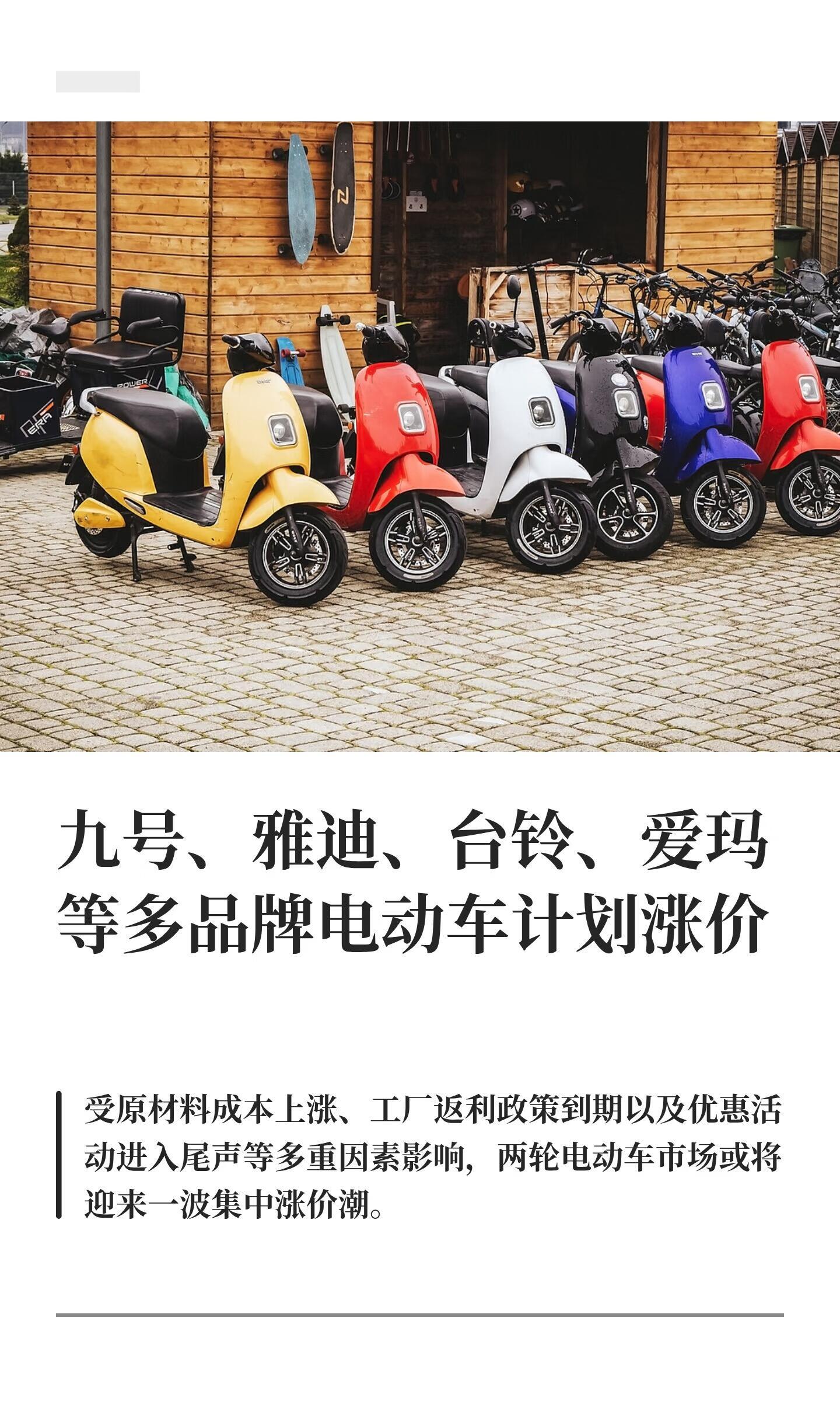 多品牌电动车计划涨价 预计涨200-300元……