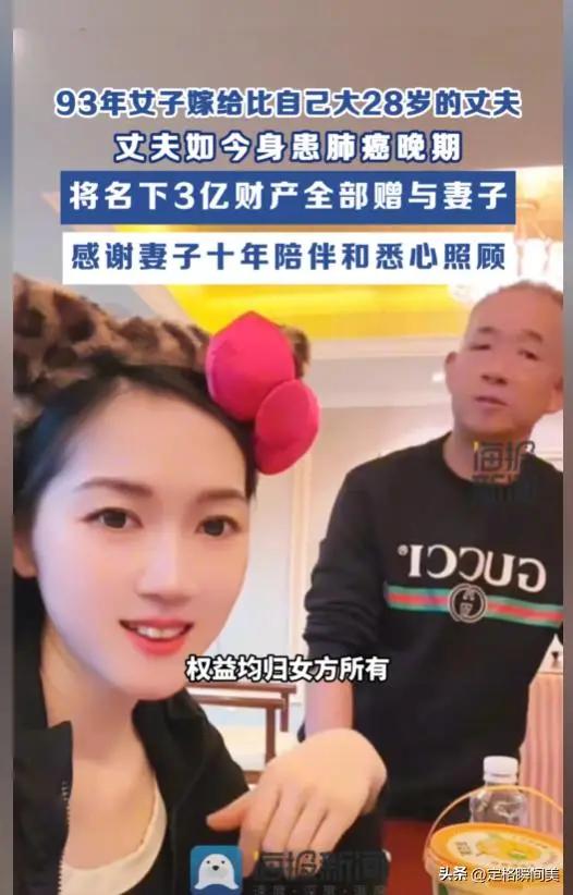 61岁娶33岁女子后续 ,男子患癌将3亿家产全给现任,吃瓜网友:这是最短的短线投