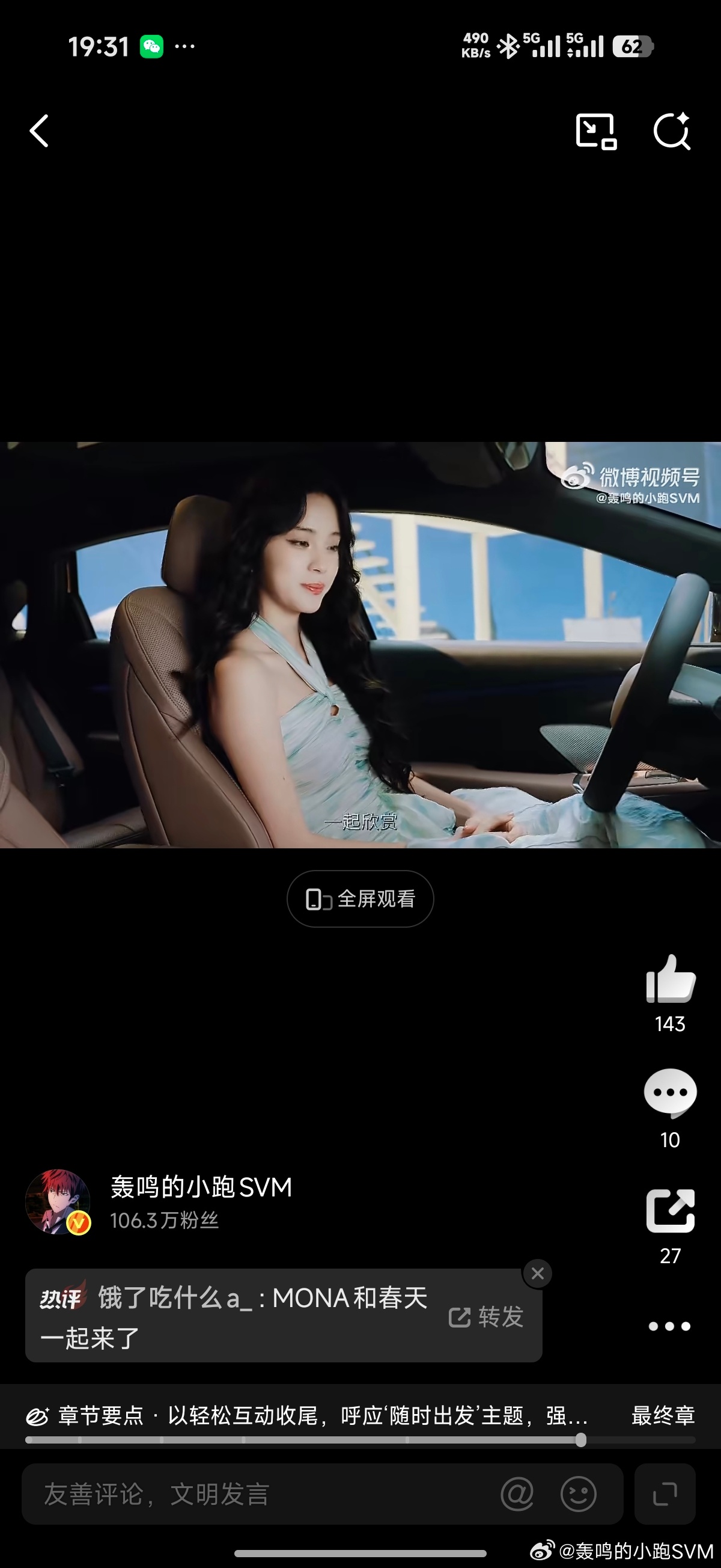 挺有意思的在车里等人 手机打开了娜娜这个视频娜娜在视频里说你好小P 直接触发了我车里的小P四舍五入 等于娜娜在我车里点播了她的"随时""这会听上了