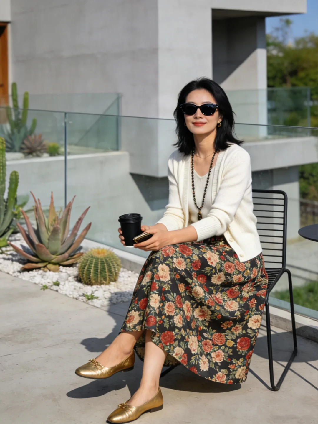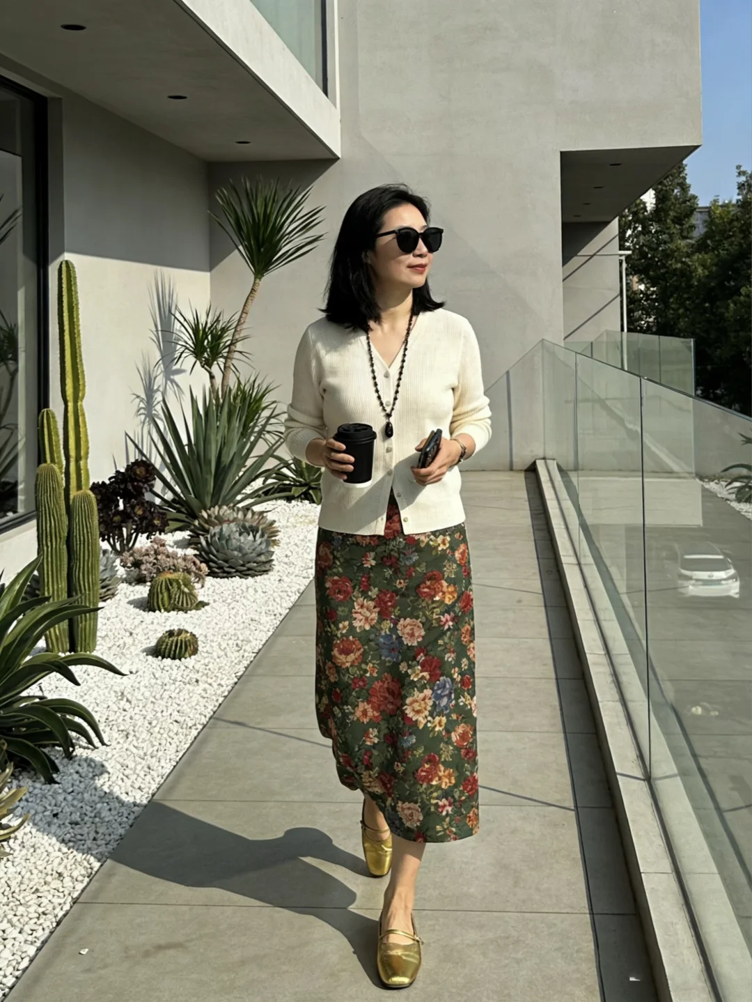 温柔穿搭风 来一杯咖啡 爱上咖啡的每一天 碎花裙 针织衫 气质穿搭 春季穿搭 ootd穿搭 今日分享穿搭