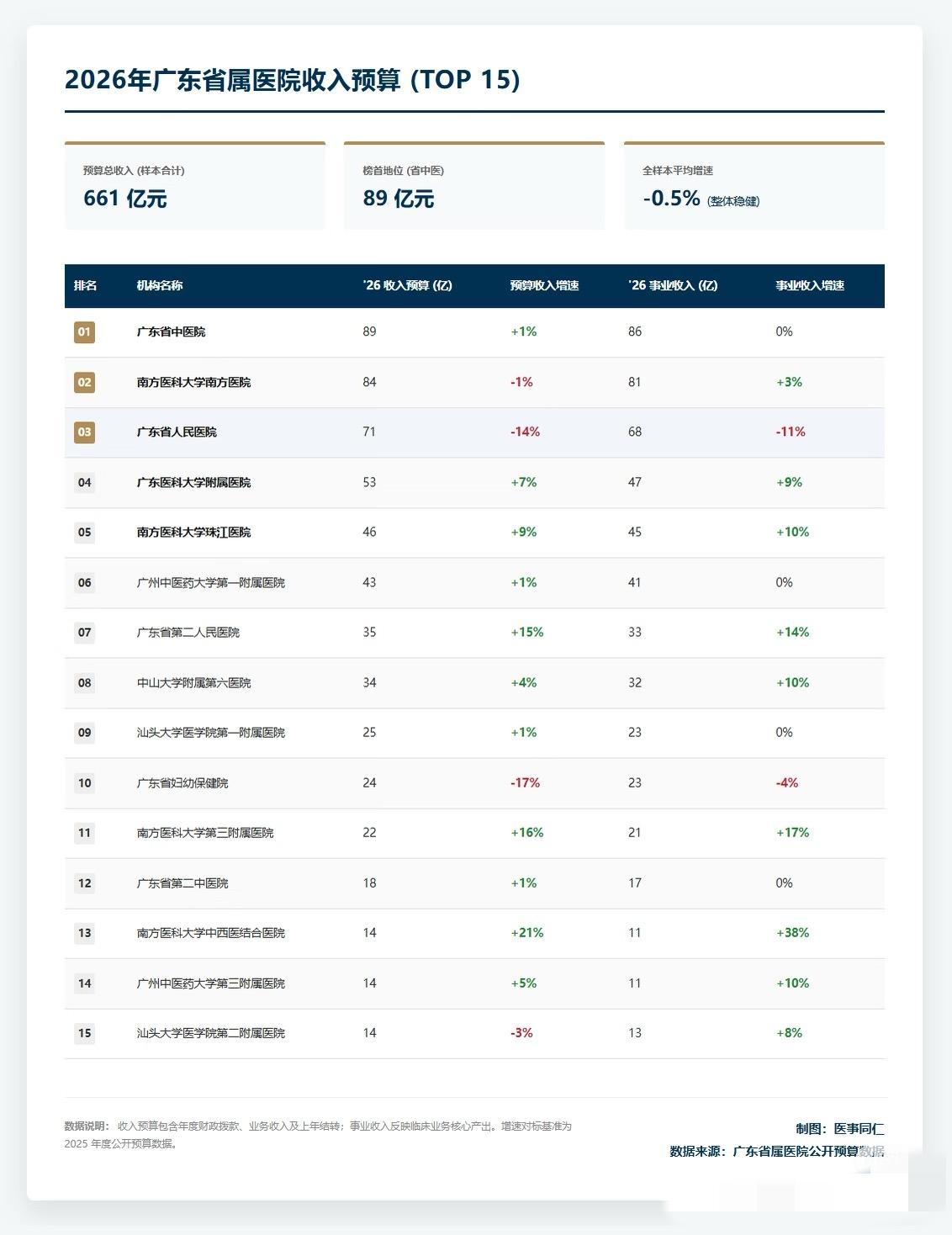 2026年广东省属医院收入榜,省中医再拿第一。它靠中医调理、康复这些领域的高自费、高复购,避开医保控费影响,现金流很好。省二医、珠江医院这些增速不错,主要靠扩容。而小型机构合计亏了2.8亿,生存空间越来越小了。