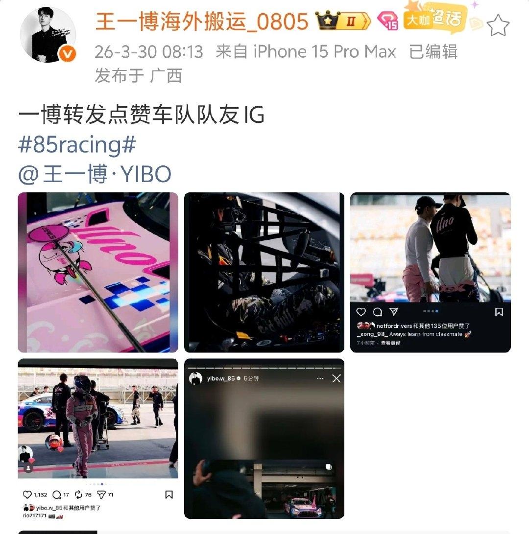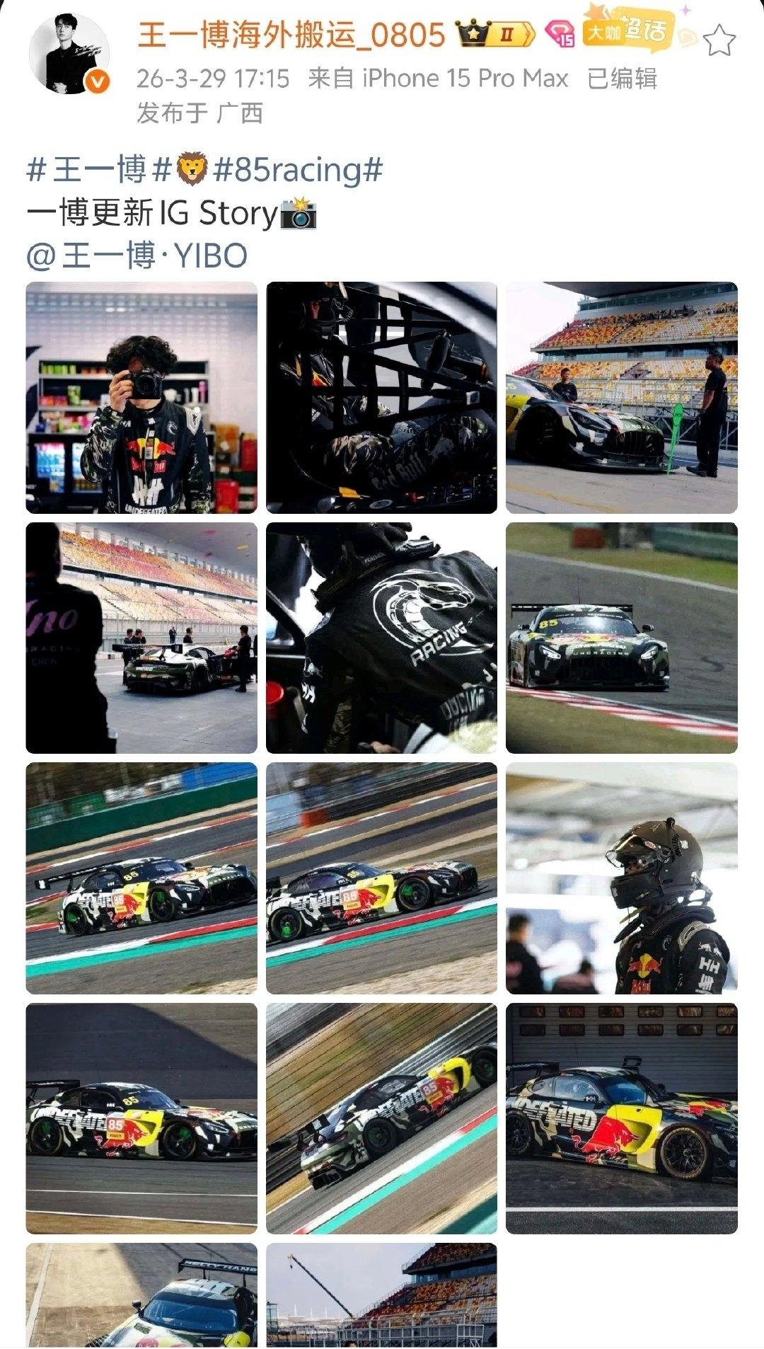王一博ins更新uno练车视频,和队友一起共创,热烈欢快的氛围破屏而出。 自己ins也是哐哐哐发了一堆照片……[笑哭] 和同频的强者一起,沉浸于热爱,还刷新了自己的最快圈速!看出来小狮子的兴奋愉快了[大金牙]。 王一博,永远向上,热烈自由,超越自我。 王一博