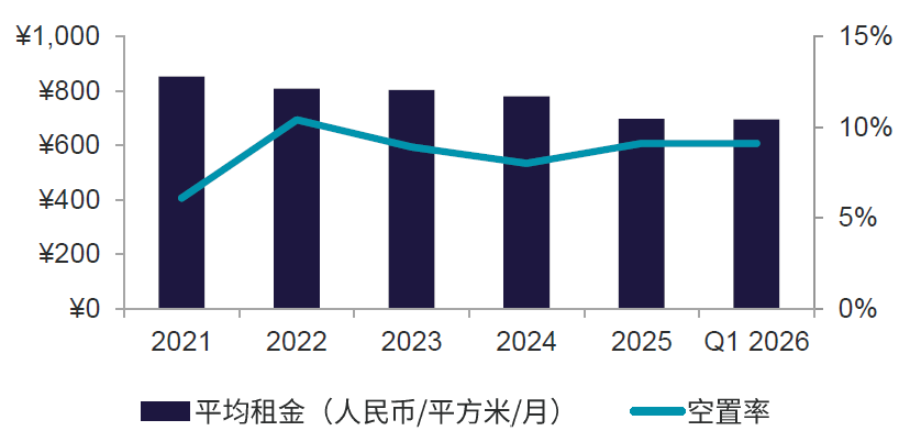 为提高出租率并形成较好的购物氛围,部分处于培育期的项目主动下调租金。全市优质购物中心最优层平均租金较2025年末微降0.4%至每月每平方米694.1元。与此同时,品牌之间同质化的竞争压力,加上对未来宏观环境、市场走势的不确定性,大部分品牌对业务扩张持保守态度,投资节奏放缓;然而相对成熟的优质购物中心得益于客流韧性,租金企稳,双方在租约谈判的拉锯导致部分优质购物中心空置面积去化稍显乏力。