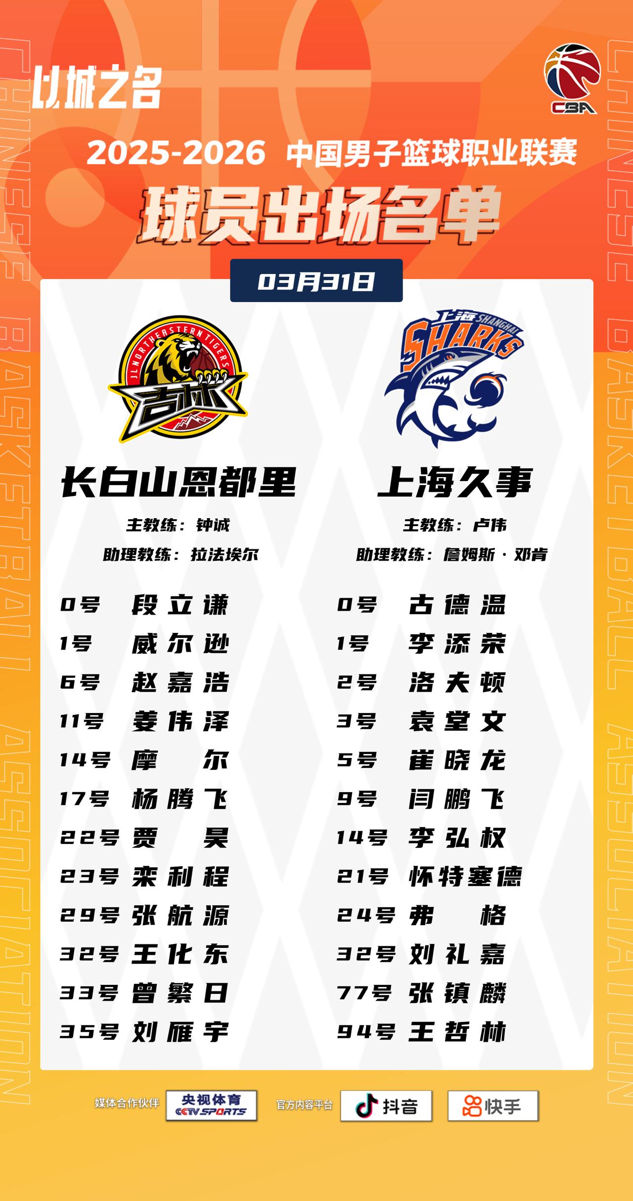 【大名单出炉】2025-2026赛季CBA联赛常规赛第三十三轮今晚开打,2场比赛将在19:35同时跳球。敬请期待!以城之名