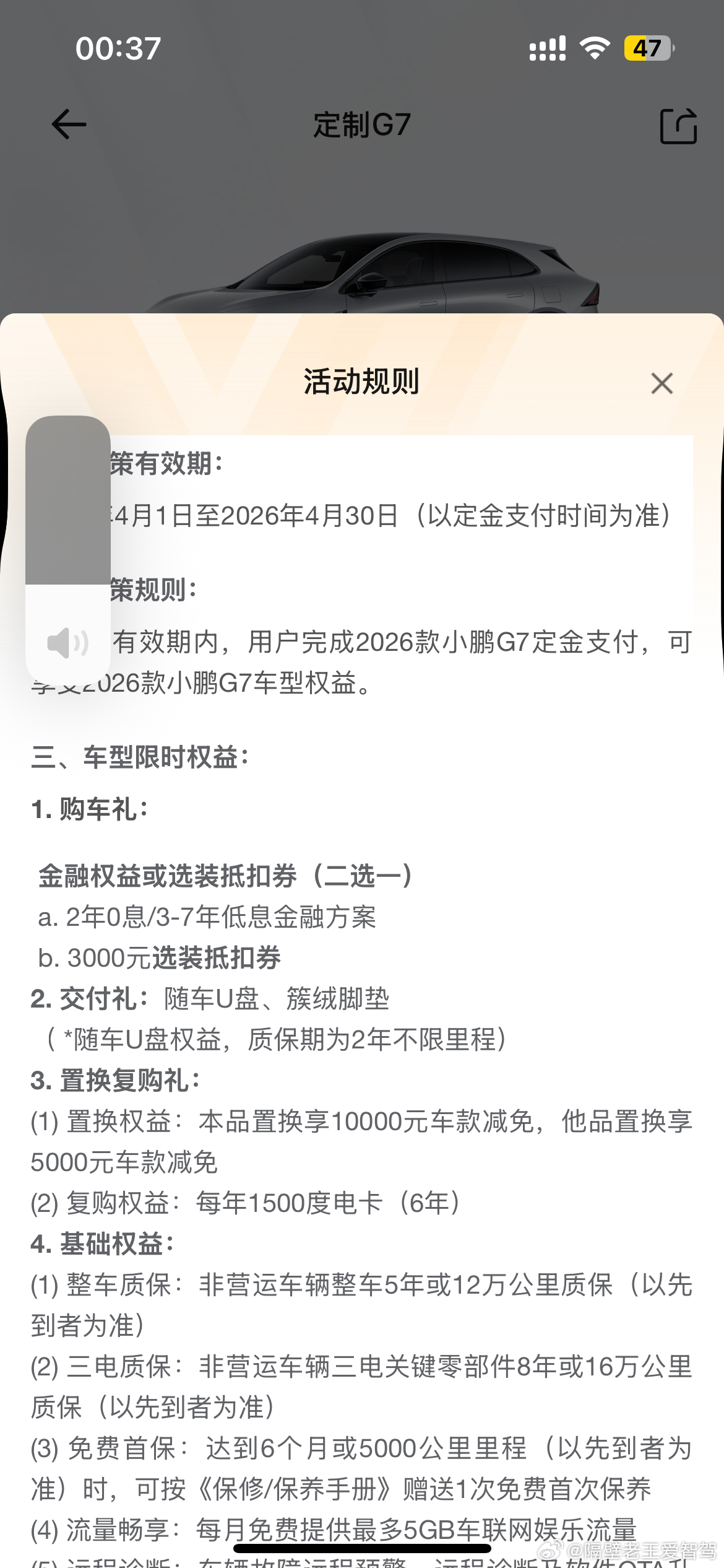 四月第一天小鹏部分车型 权益变少了以小鹏g7为例 8000元新春补贴没了小鹏汽车