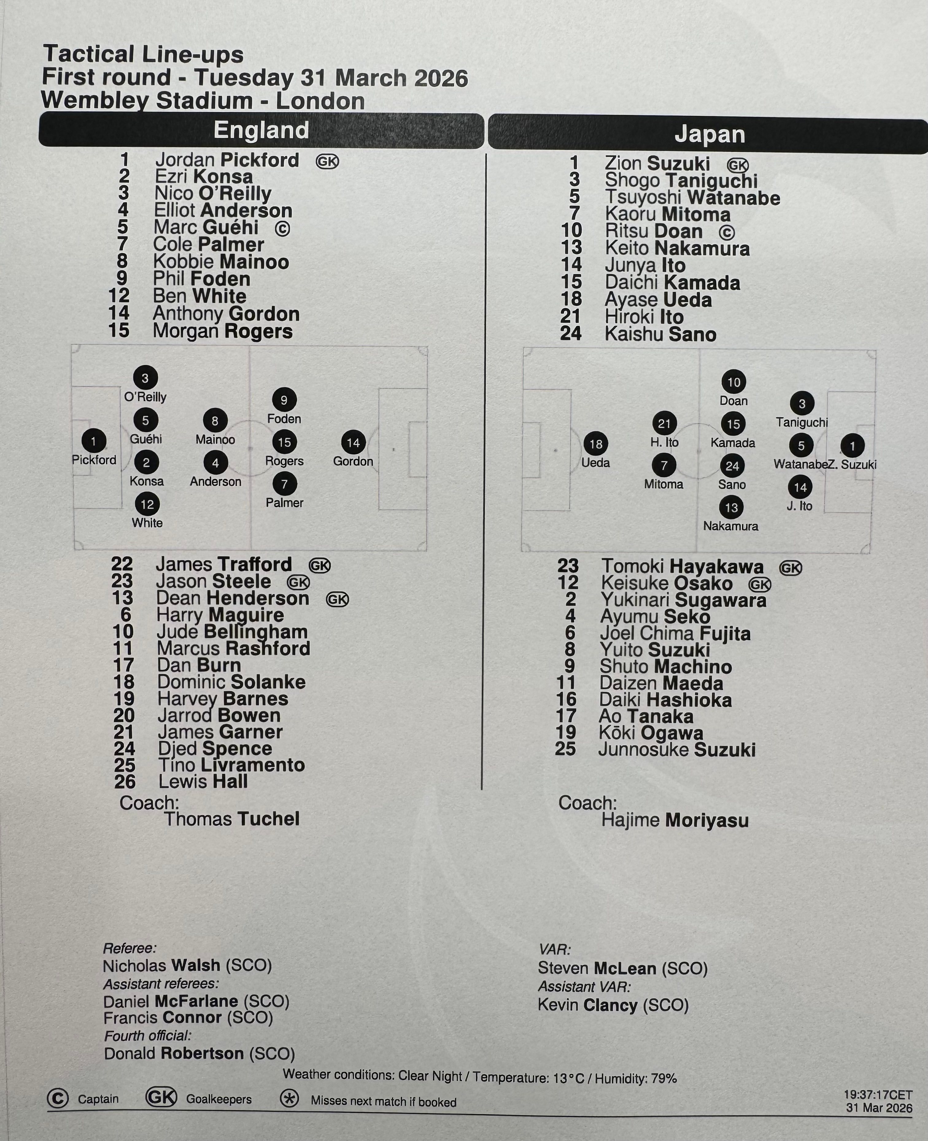 今天进大名单了,也许能看到热身罗杰斯 帕尔默 福登 梅努同时首发英格兰vs日本