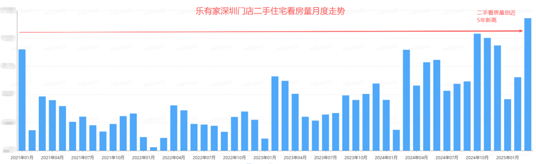 更夸张的是看房量,乐有家数据显示,二手看房量创了近5年新高,比2024年10月那个历史高峰还高出了17%!