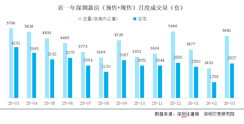 深圳3月一二手住宅合计成交7898套,同比下滑了约23%。