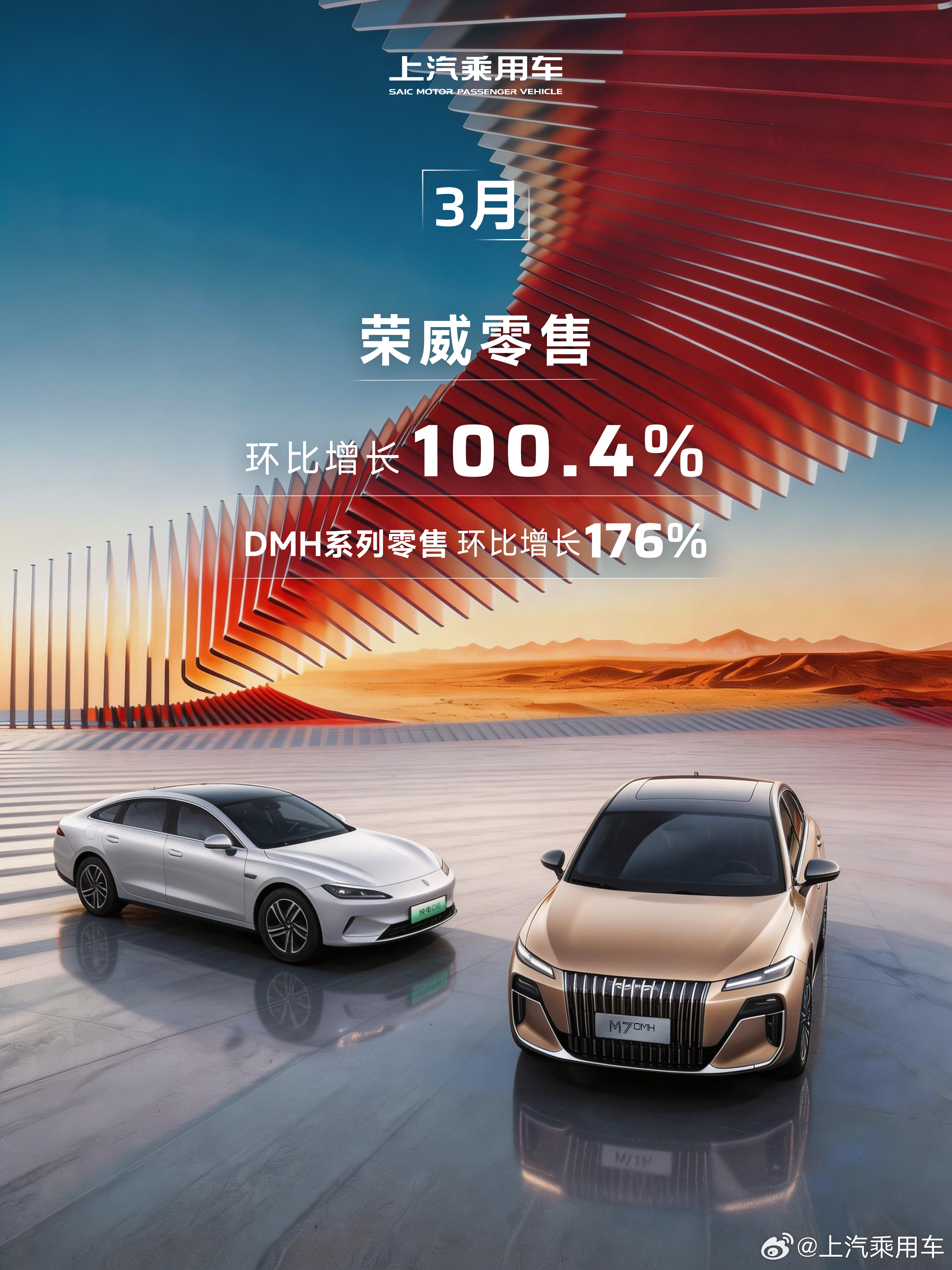 上汽乘用车荣威、MG 3月零售超91,000辆,同比增长4.8%,环比增长65.8%!