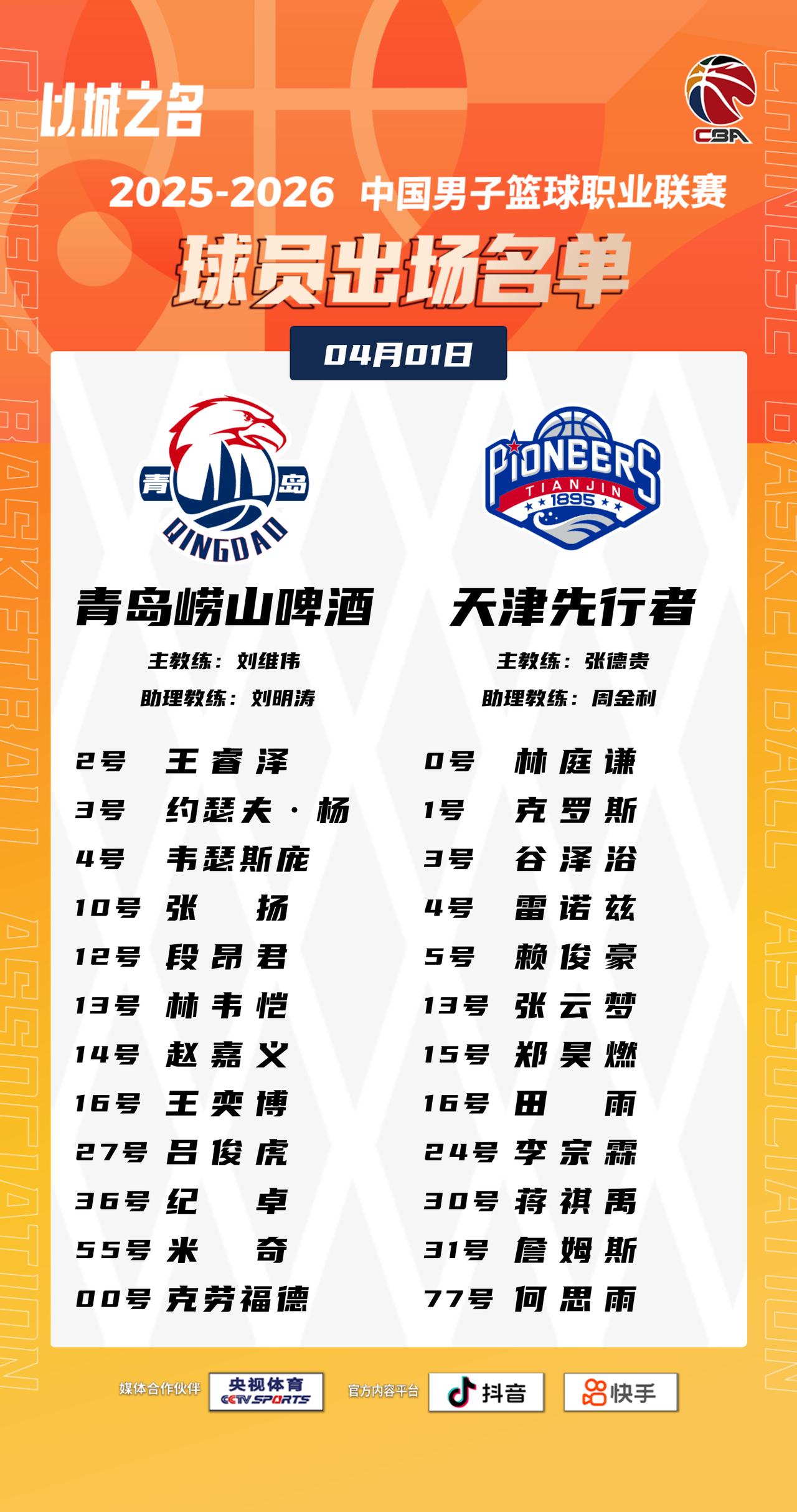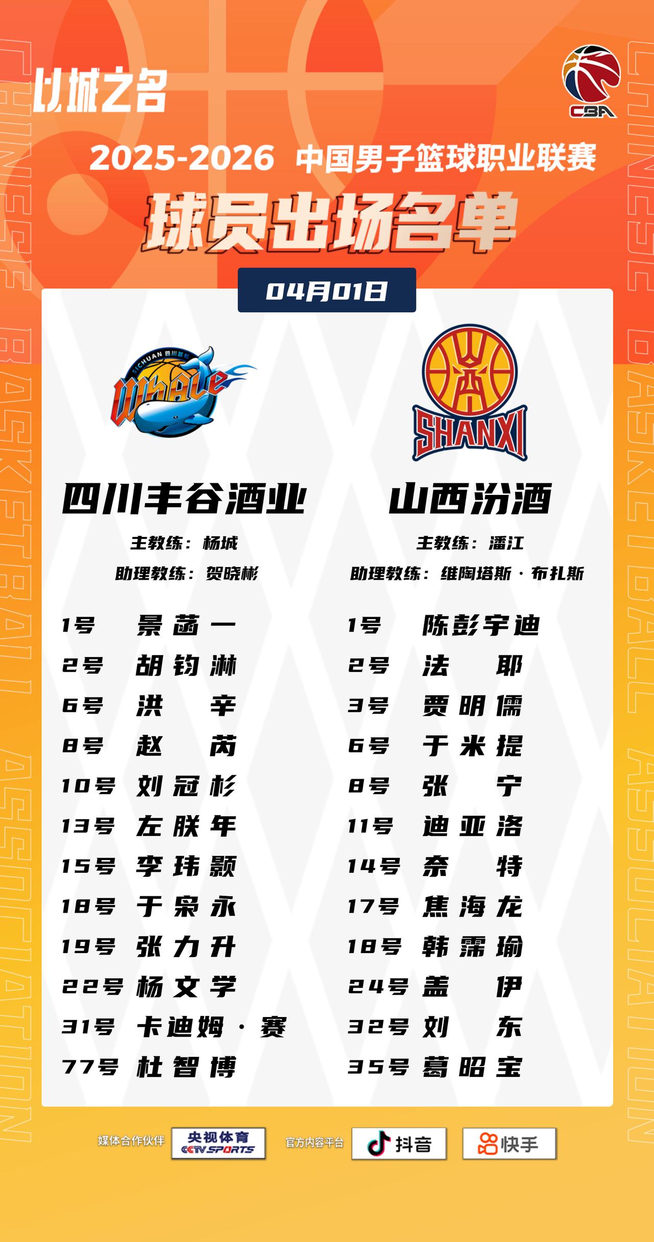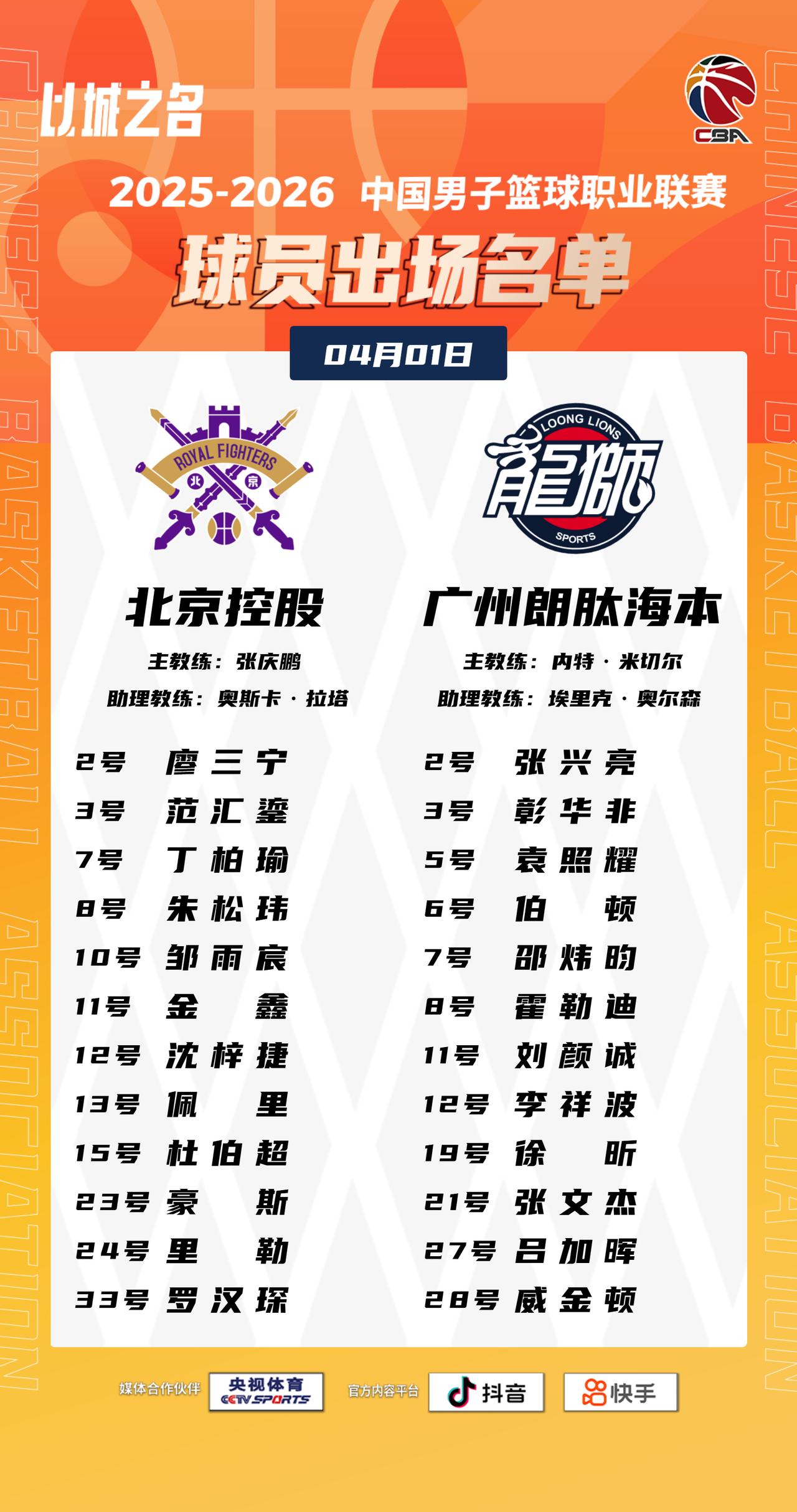 【大名单出炉】2025-2026赛季CBA联赛常规赛第三十三轮今晚继续进行,6场比赛将在19:35同时跳球。敬请期待!以城之名