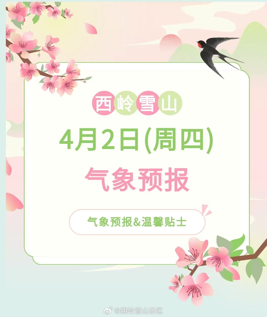 西岭雪山4月2日(周四)气象预报#西岭雪山 #
