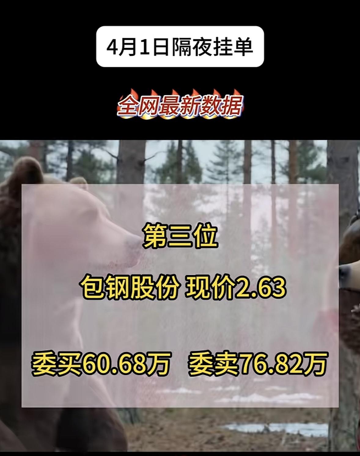 4月2日周四暗盘隔夜挂单排行榜出炉 包钢股份这数据很有看头啊!现价2.63,委