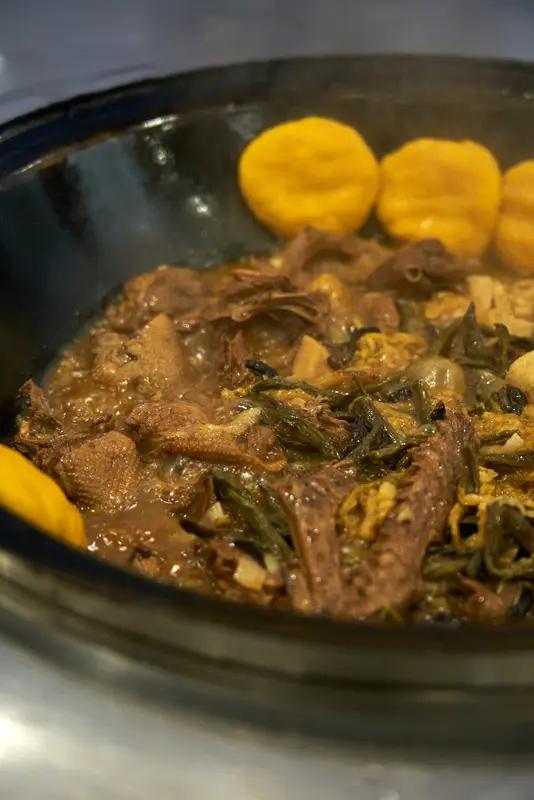 提到东北菜,我脑海里立马蹦出好几道。首当其冲是杀猪菜,这可是年猪最后的尊严。血肠得趁热吃,酸菜要腌满30天,香得邻居都想来蹭饭。 还有乱炖,也就是“一锅出”,排骨炒出油,豆角炖到掉色,软糯入味。炸蚕蛹也很有特色,别看它样子怪,蛋白质含量高达50%,连宇航员都爱吃。 另外,像豆腐蘸大酱、毛葱炒鸡蛋这些家常菜,饭店很难吃到。小时候爱吃的鸡蛋焖子,配着烀玉米,香得不行。东北菜看着糙,却藏着温度和人情,谁吃谁爱!