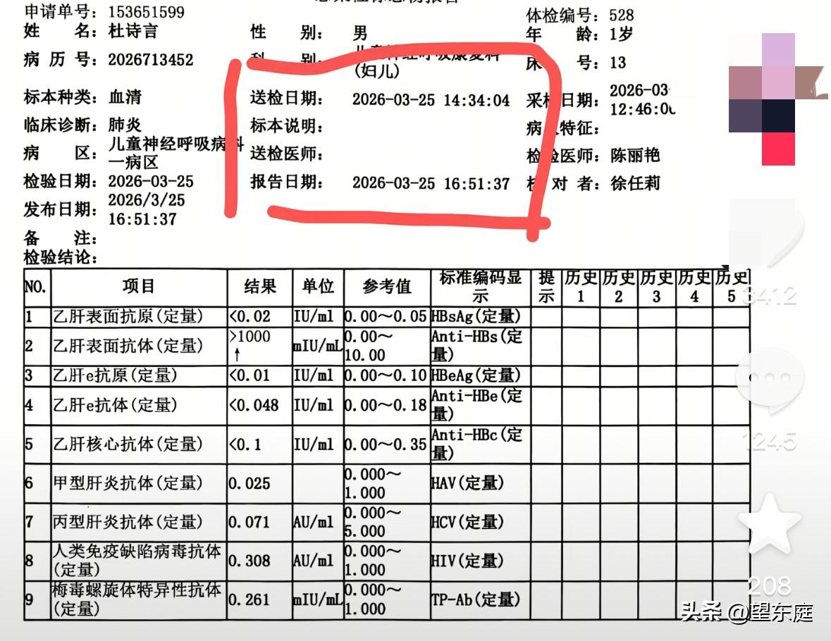 多可爱的小宝贝,然而,他的生命却止步于1岁!他的名字叫杜诗言,出生于2025年,湖北恩施州人。 2026年3月,他生病了。可前后住院十几天,他咳嗽发烧的情况仍没有好转。 为了得到更好的救治,家里人带着他换了一家医院就诊。3月25日,在医生的建议下,小宝宝的家长给他办理了入院治疗。 可谁也想不到,小宝宝当天就不在了! 根据小宝宝的母亲发声,当天具体是这么个情况: 上午十点左右,他们挂了专家号,医生面诊时评估孩子“问题不大”。 被安排入院后,孩子睡着了。 12:40分,孩子醒来后被带去护士站抽血及相关检查。 13:00分,医护人员给孩子输了阿奇霉素。 13:04分,孩子出现了抽搐的症状。 13:36分,孩子已经没有心跳了! 看完整个事件过程,心里真的太不是滋味了。多可爱一个小宝贝啊,说没就没了实在让人痛心。 悲剧发生后,家长质疑孩子是因药物过敏离世的,眼下,相关部门已经在调查处理此事。 坦白说,都是为人父母的,但凡孩子有点小病小痛,都令人揪心。 这孩子病了那么久了,都没有好转。站在个人角度,真的同情孩子爸爸妈妈。但具体孩子是因什么情况离世,现在还没有结论,一切都要等鉴定过后通报才知了。 通过此事,希望大家平日里一定要照顾好自家孩子,小病不要拖,如若几天都没有好转,要及时转去大医院治疗。[祈祷][祈祷][祈祷][祈祷]
