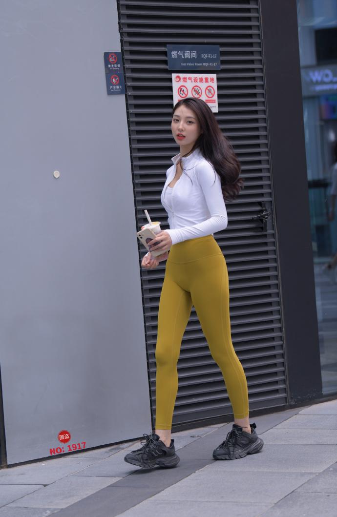 正常穿搭无不良引导,实拍运动瑜伽裤美女街拍