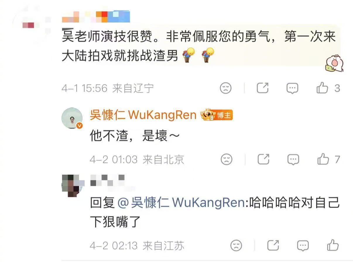 吴慷仁问bt什么意思 前脚被罗梁吓得捂眼睛,后脚被吴慷仁的问题逗笑,这情绪过山车谁懂!剧里他是恐怖担当,剧外连“bt”都要请教,这种“刚触网”的纯真感,和角色的阴森形成暴击,迷之幽默直接拉满,剧集危险关系