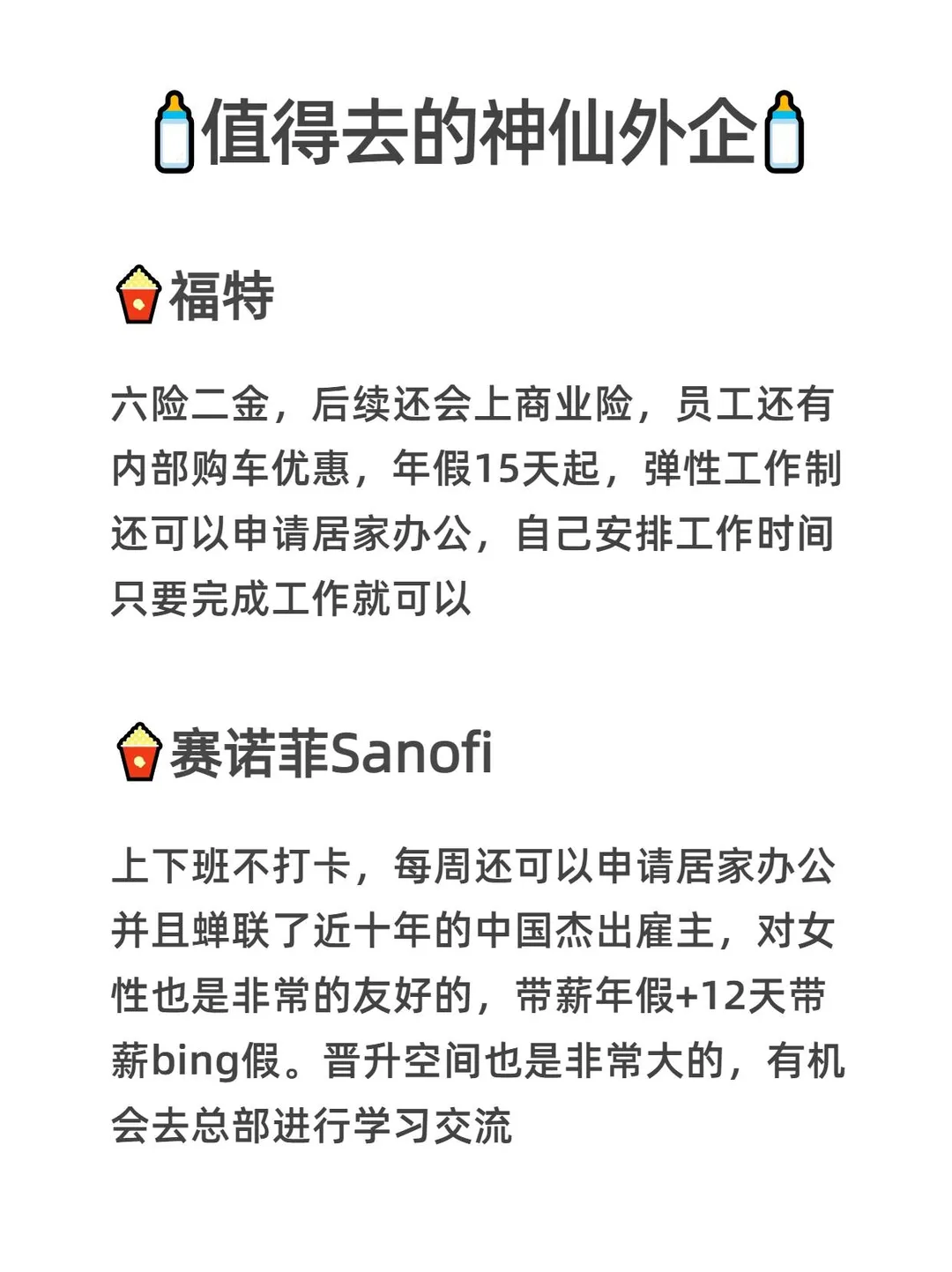 今天给大家整理了一批宝藏芯片半导体外企! 相关专业的小伙伴,[自拍R]赶紧🐎住别错过! ~ ✨这些外企年假15天以上,无996 ✨弹性工作制、居家办公[害羞R] ✨轻松实现WLB,对女性友好[飞吻R] ~ 我在空闲时间整理好了外企的信息表,[色色R]帮助宝子们消除信息差~ ~