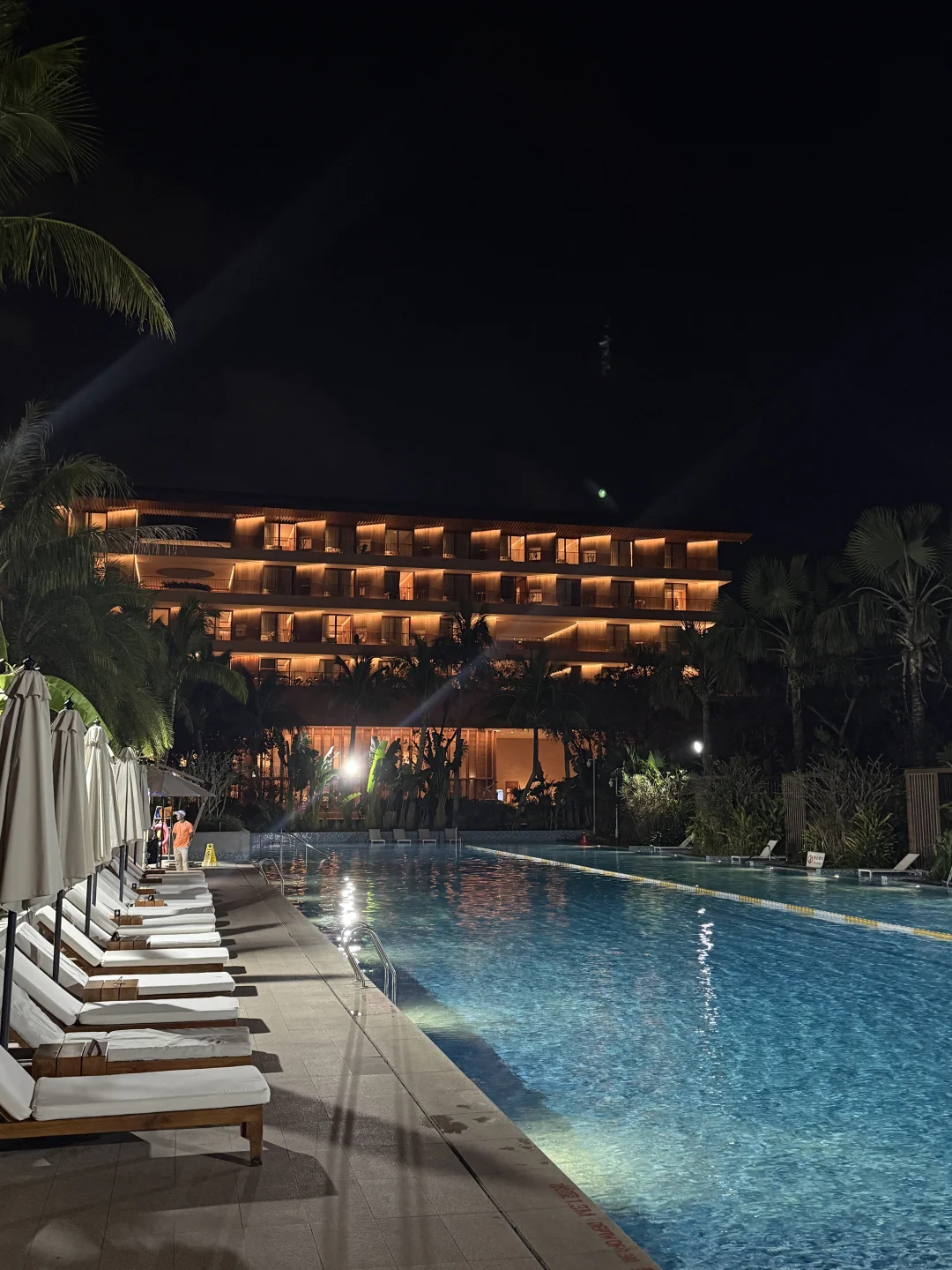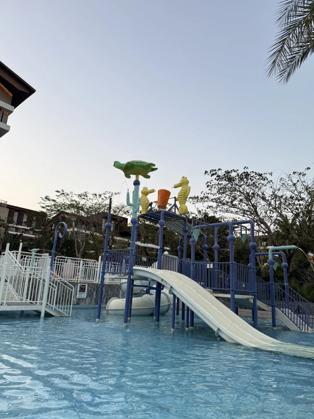 一家被名字耽误的设计师酒店 从酒店的大堂开始就与众不同 整体风格确实非常有艾迪逊的feel 酒店每一处设计风格拍照都超出片 充满设计感又有满满的热带氛围 夜幕降临的那一刻又切换到另外一种颜值 每晚8点10分开始还有非常有仪式感的入夜仪式 跟艾迪逊一样的水池喷火表演,非常震撼 早餐品种丰富精致,菜品质量也很高 每天都有不同亲子活动项目可以免费参与 配套设施也很完善,儿童恒温泳池,儿童乐园 酒店占地面积很大,一天都逛不完 还有一个空气超好的山谷花园 可以说就是妥妥的遛娃和吸氧圣地 在这里的每一天都非常的放松