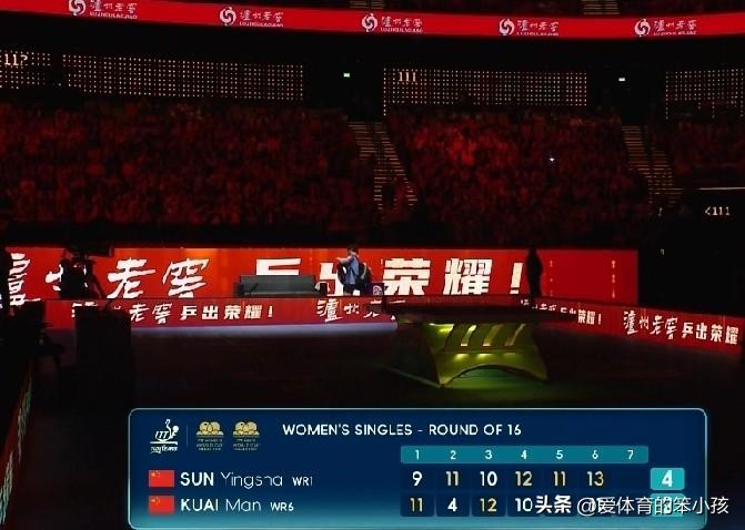 而进入第三局的对决当中孙颖莎前半局5:3、6:4比分占优,中后局一度10:8利用接发球抢冲斜线拿到局点。但两个幸运分和场上的小意外,让蒯曼艰难的把比分重新追成10平,反而是孙颖莎出现心理变化的过程中,蒯曼利用孙颖莎的进攻弹网出界,还直接把球打出界12:10逆转取胜第三局,把大比分改写成了2:1。这样的一种局面也让孙颖莎在场上有点陷入被动。