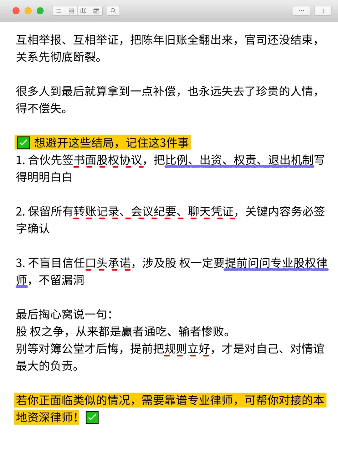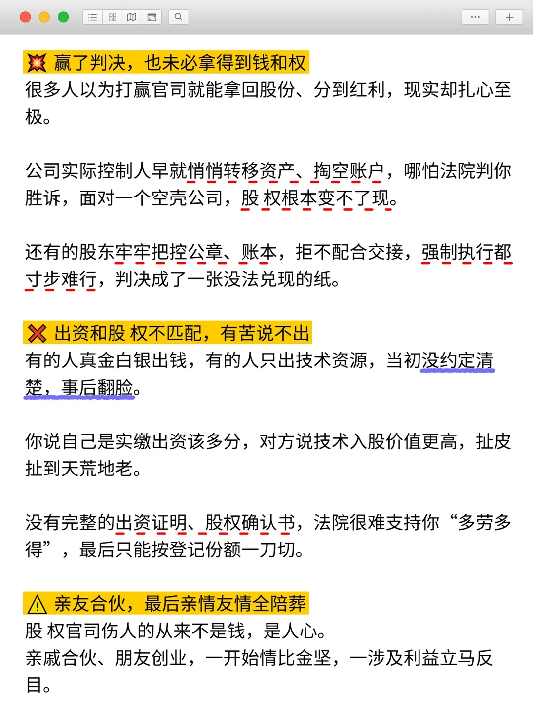 家人们,真的别轻易跟人合伙搞股权,一旦闹上法庭,结局往往比你想象的还要残忍😭 做这行这么多年,见过太多股权官司: ▪曾经并肩创业的伙伴、血脉相连的亲友,为了股份撕破脸皮,打到最后公司散了、钱没了、人情也彻底凉透。 因字数有限,具体内容请 ⬅️ “图片”