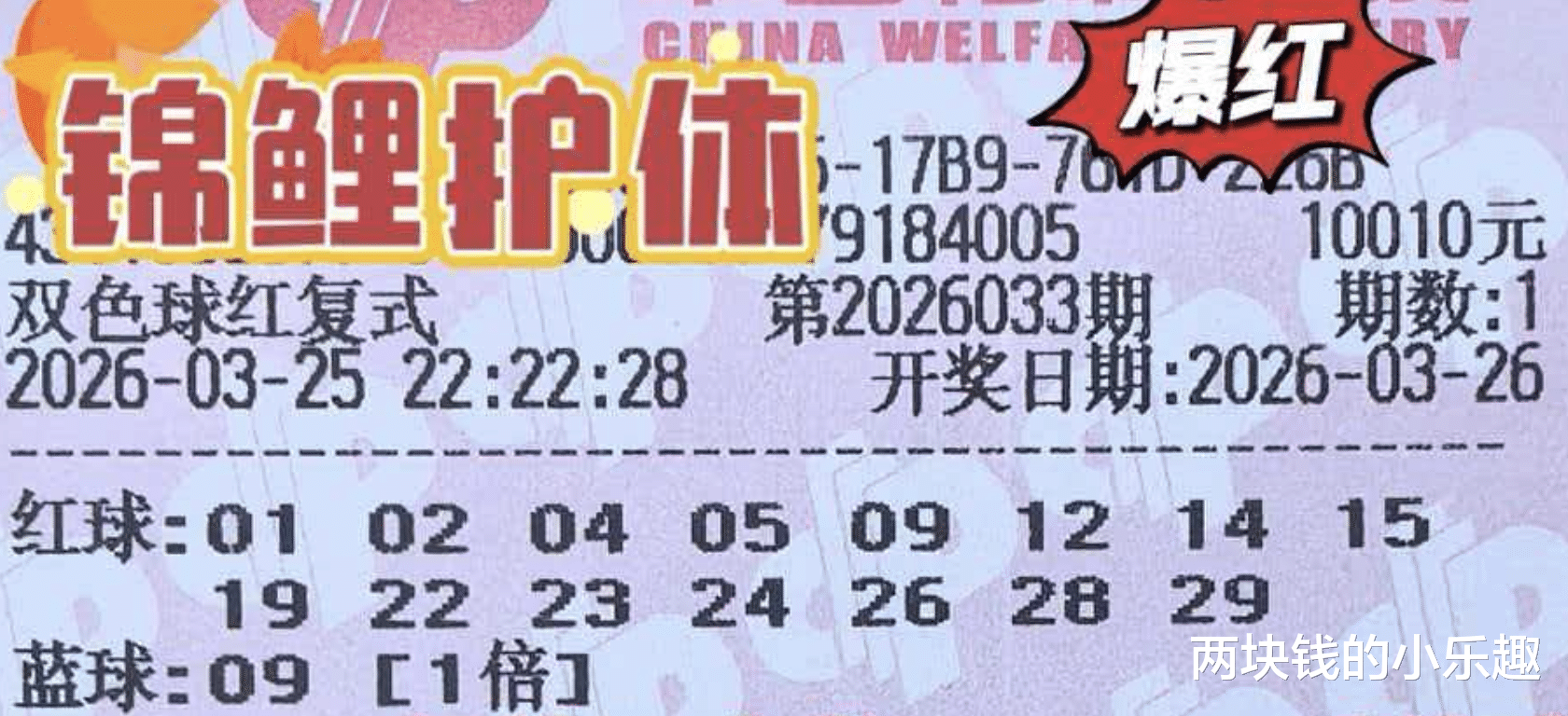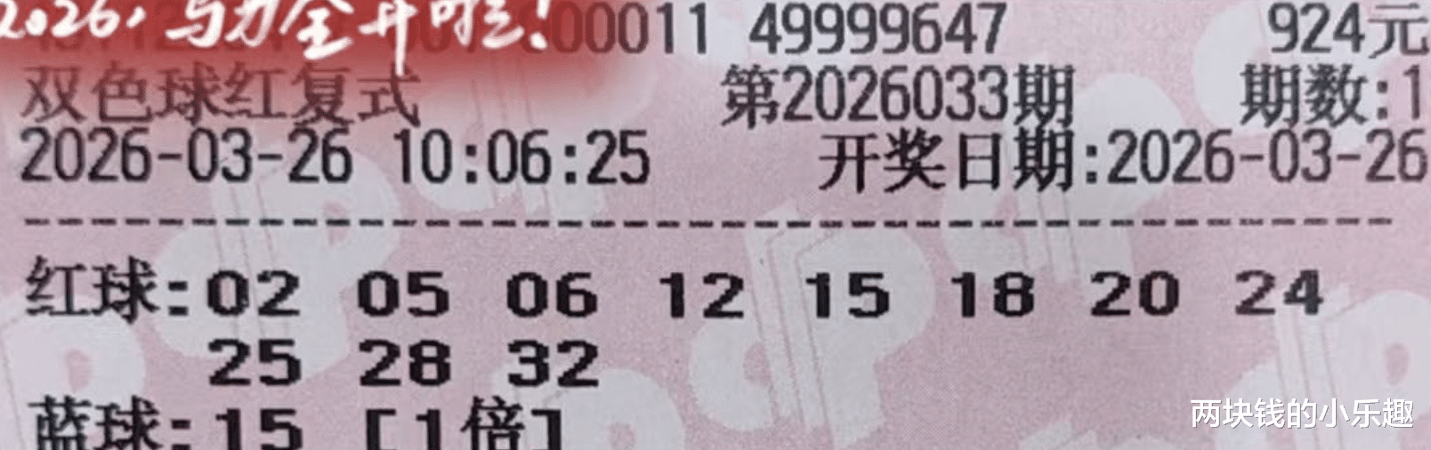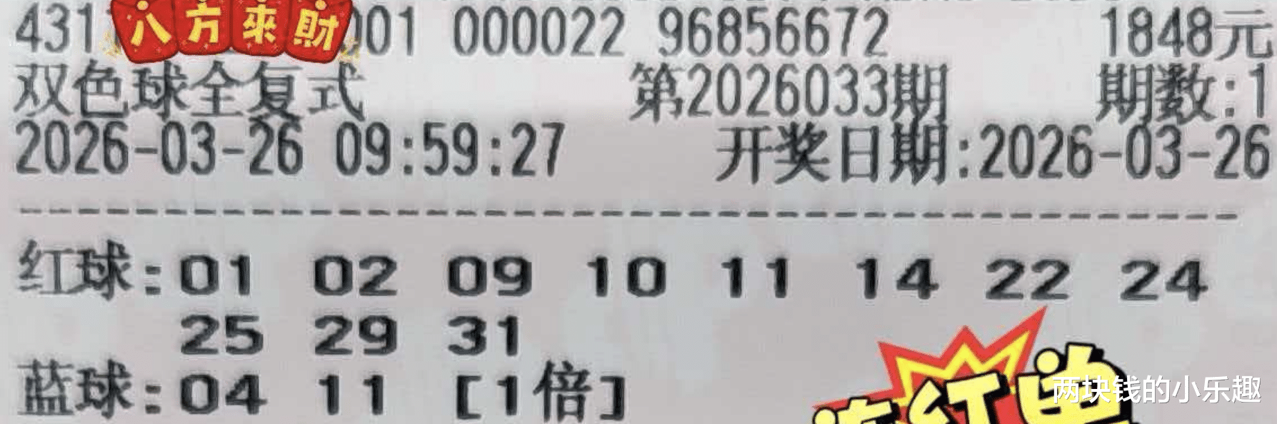 大家好,下面给大家带来了福彩双色球第26033期的赏析,本期为大家带来了湖南复式团队的分享,同往期相同,这只是团队分享的第一波开胃小菜,不过这第一波就已经比较精彩了,领衔的是1万复式,另有6864复式双兄弟相伴左右,下面请大家开始欣赏: