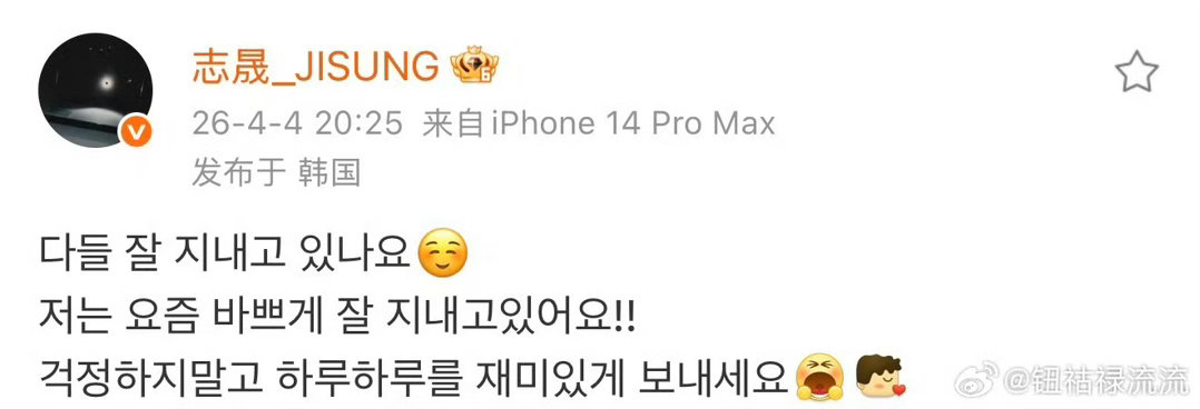 朴志晟发博人都要继续往前走,长大了成熟了,但真诚从未变过