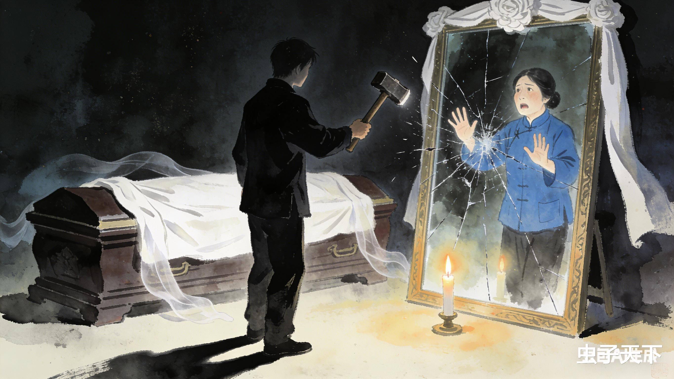 抬棺出门时,“啪”一声脆响,镜面裂了道斜缝,从右上角直劈左下角。