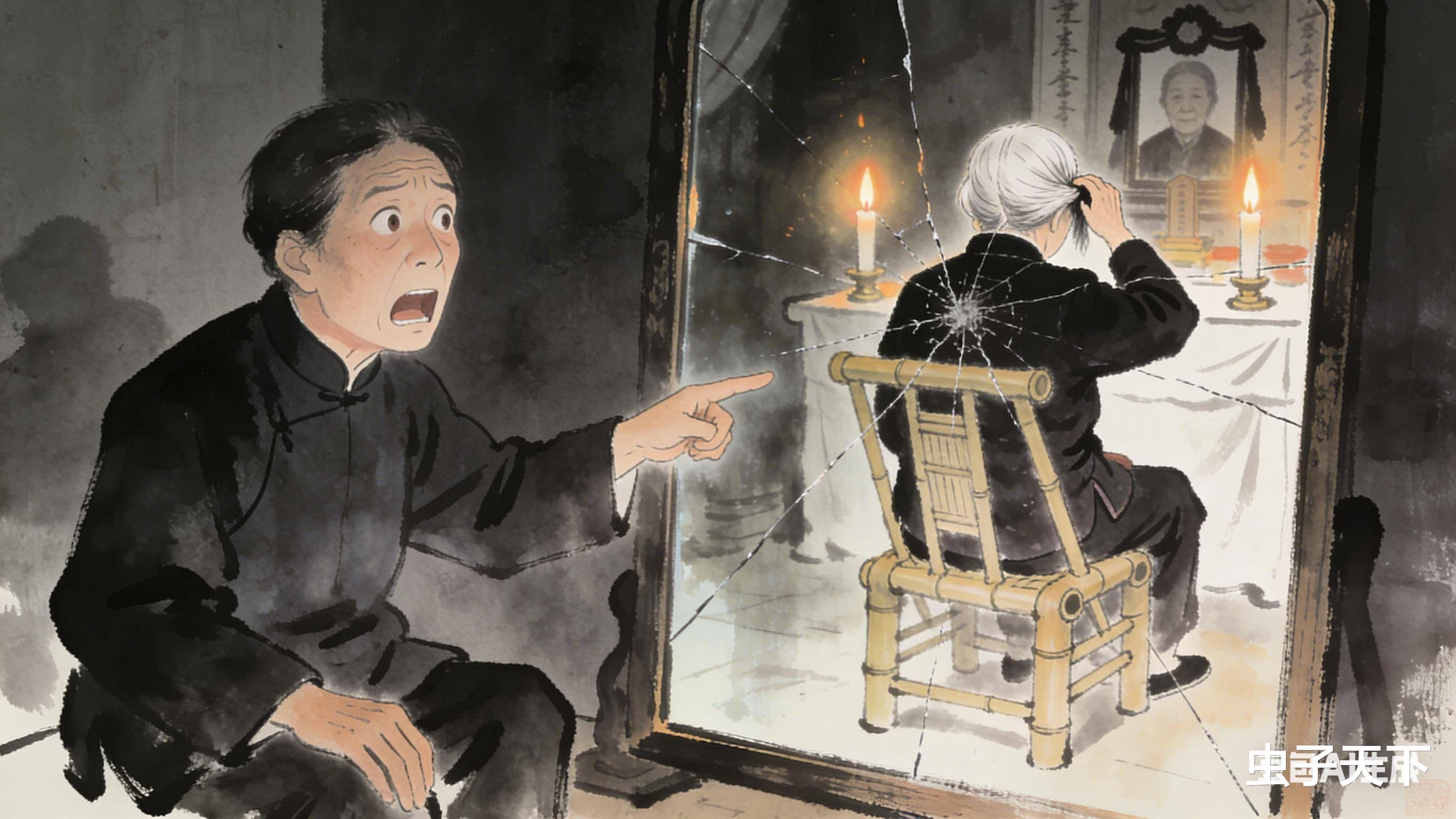 当晚守灵,我无意瞥向那镜子,吓得魂飞魄散,镜子里,我娘正坐在竹椅上梳头!