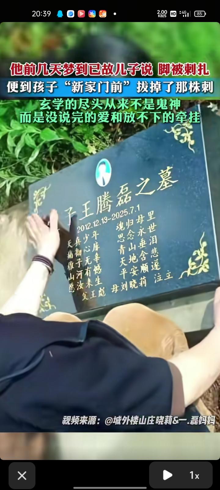 4月3日,重庆。前几天,王先生梦到已故儿子说脚被刺扎了,就去儿子坟墓看看,还真有刺,坟墓旁长满了草,随后他就把坟墓旁边的刺拔掉。 有人说玄学的尽头是科学,但始终相信,玄学的尽头是爱,也是刻进骨子里的思念,让两个世界有了无声对话。