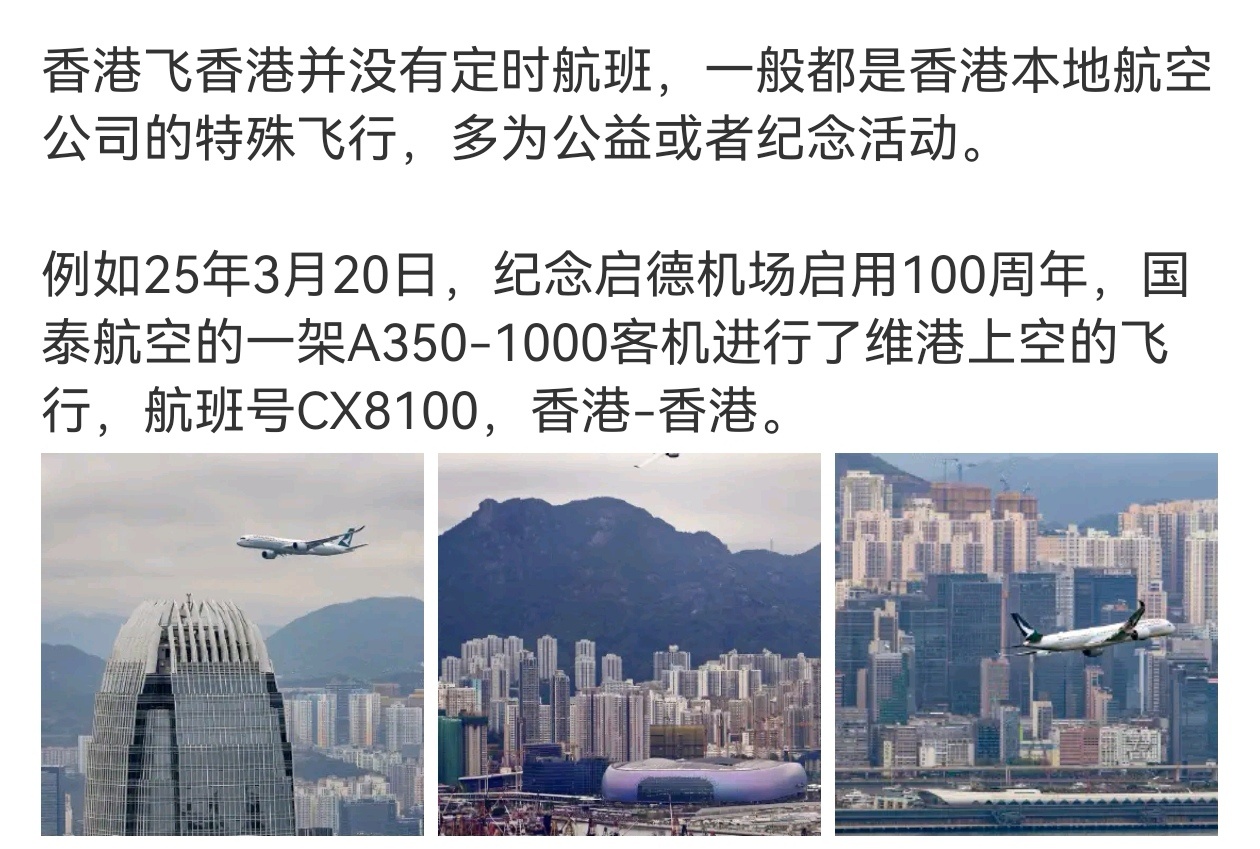 香港飞香港的特殊航班,并非日常定时运营的商业航线,而是香港本地航空公司推出的专属特殊飞行,多用于公益圆梦、历史纪念、航空科普等特殊场景。香港飞香港的航班科普满谈