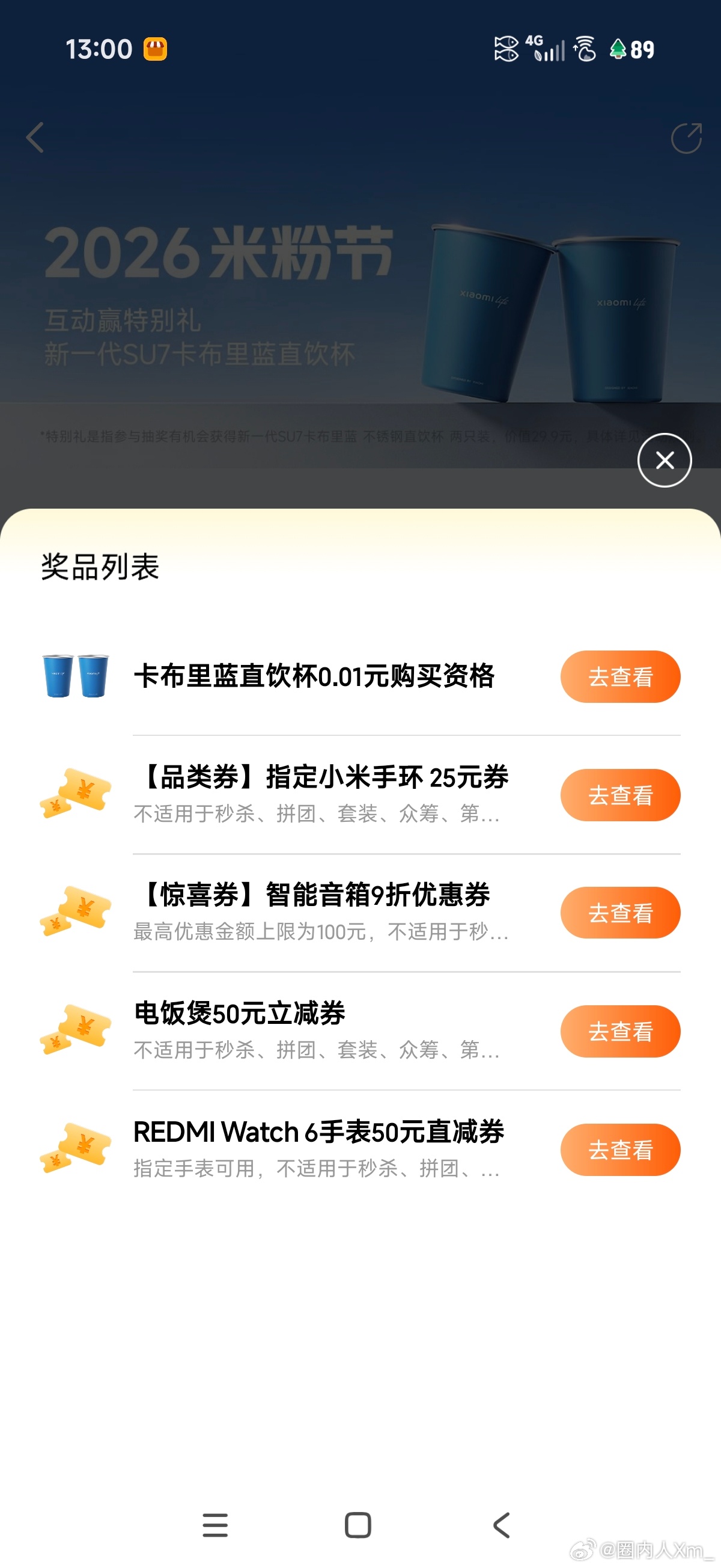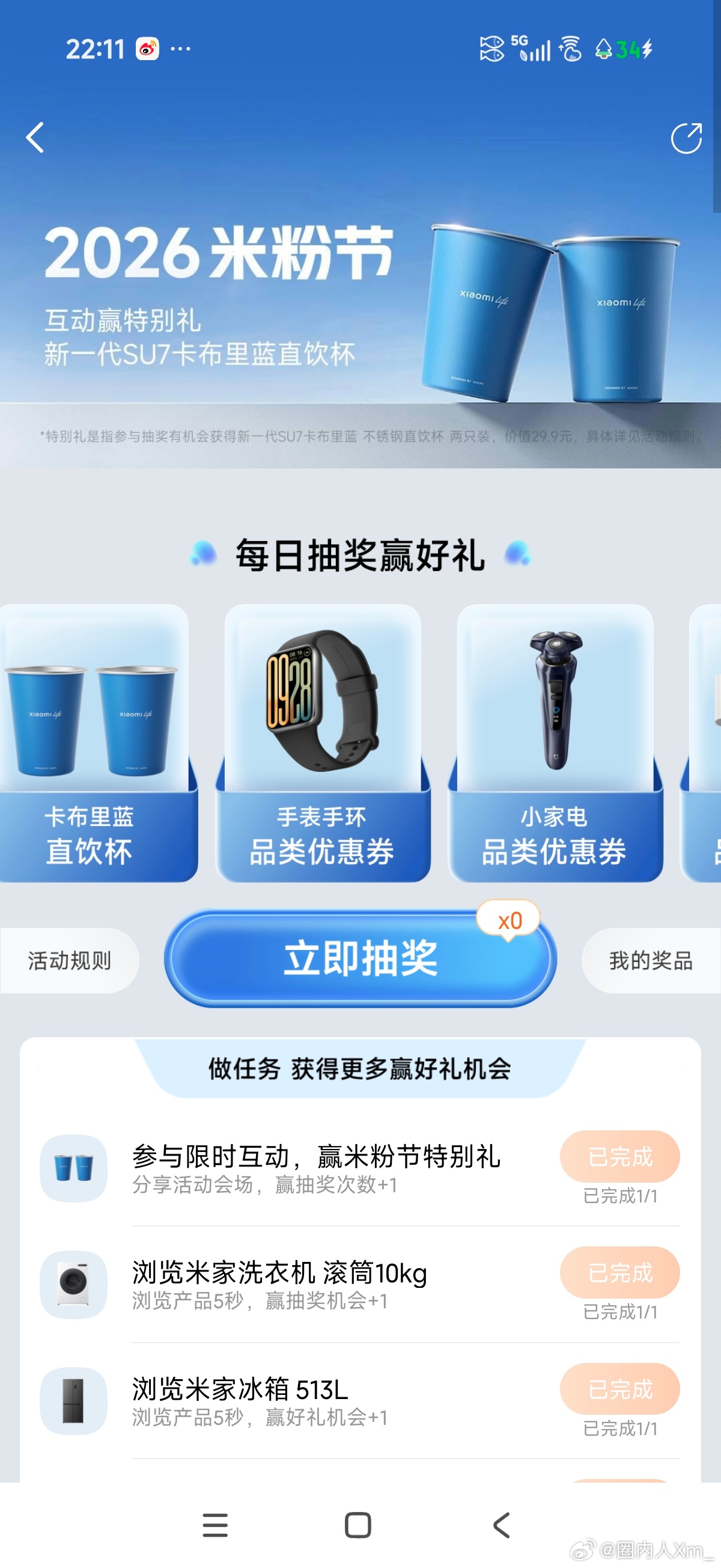 我抽到了两只卡布里蓝的直饮杯
