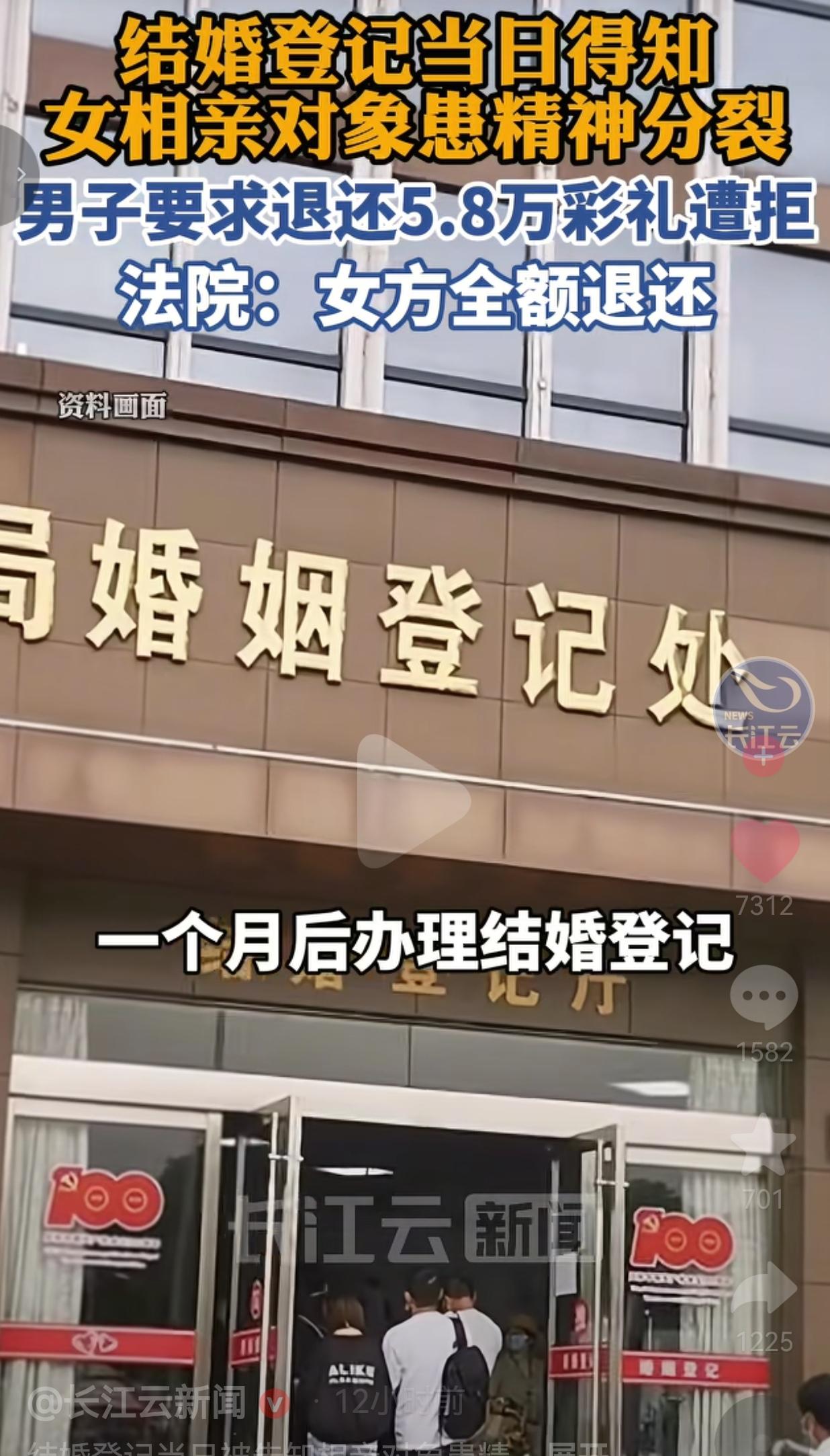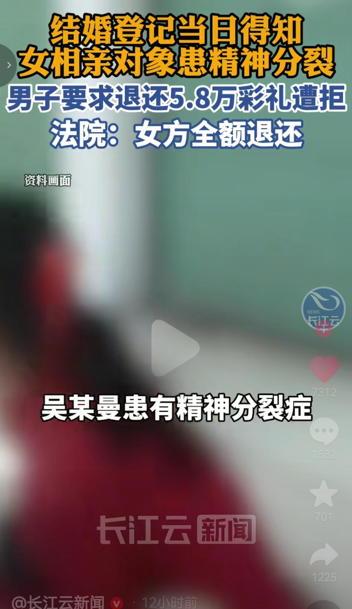 太坑了!相亲结婚,领证当天才被爆女方隐瞒精神分裂症!男方要退5.8万彩礼,女方家居然找借口拒不返还?法院直接判:一分不少,全额退还!太解气了! 杨某和吴某曼经人介绍相亲,相处后敲定婚事。按习俗,杨某给了女方家5.8万彩礼,对方收得痛快,双方约好一个月后领证。 领证当天,杨某揣着小红本,满心欢喜要开启新生活。结果民政局工作人员一句话,直接把他砸懵:“女方吴某曼患有精神分裂症,结婚必须监护人到场同意,你们手续不全,办不了!” 杨某当场僵在原地!相处这么久,女方、她爸妈半个字没提过生病的事情!这哪是结婚?分明是设局骗婚! 他当场翻脸:这婚绝对不结!要求退还5.8万彩礼。 结果女方家直接耍无赖:“彩礼已经买金饰、买电动车了,花光了,不退!” 杨某彻底心寒,直接告上法院。 法院一查:没领证、没办婚礼、双方已同意解除婚约,女方故意隐瞒重大疾病,属于欺诈。 法院判了:吴某曼及其父母,10日内全额返还5.8万彩礼! 有网友评论道:这就是骗婚!领证才说有精神病,早干嘛去了?收彩礼比谁都积极!法院判得太对了! 也有的网友说:这家人心太黑!隐瞒精神病害人家一辈子,还好意思不退彩礼?真够缺德! 还有的网友说:支持全额退!隐瞒重大疾病就是欺诈!婚姻都无效了,凭啥扣人钱? 更有网友表示:现在相亲真吓人!全是坑!幸好法院明事理,不然男方冤死! 要我说,这根本不是谈婚论嫁,这就是赤裸裸的欺诈! 精神分裂症是重大疾病、影响婚育、可能遗传 ,女方全家都知道,却从头到尾瞒得死死的! 收彩礼时眉开眼笑,领证当天才暴露,就是想生米煮成熟饭、逼男方认栽! 5.8万,对普通家庭就是血汗钱、养老钱、娶老婆的全部家底! 女方家拿着骗来的钱买金饰、买电动车,还好意思说“花光了不退”? 良心不会痛吗? 还好法院够硬气!全额退还四个字,就是给所有想靠隐瞒病史骗婚的人一记耳光! 婚姻的底线是真诚和坦诚,连基本实话都没有,配谈什么结婚? 这件事根本不是5.8万的事,是婚姻的底线、做人的底线! 法律判的不只是返还彩礼,更是保护知情权、捍卫诚信、打击欺诈! 现在相亲乱象太多:隐瞒病史、隐瞒婚史、隐瞒债务…… 但法律说得很清楚:重大疾病婚前必须如实说,不说就能撤销婚姻、全额退彩礼! 谁想靠欺骗换婚姻,最后只会人财两空、颜面扫地! 最后,我想说的是:隐瞒换不来婚姻,欺诈守不住钱财!法律护老实人,诚信才是底气! 对此,你怎么看?