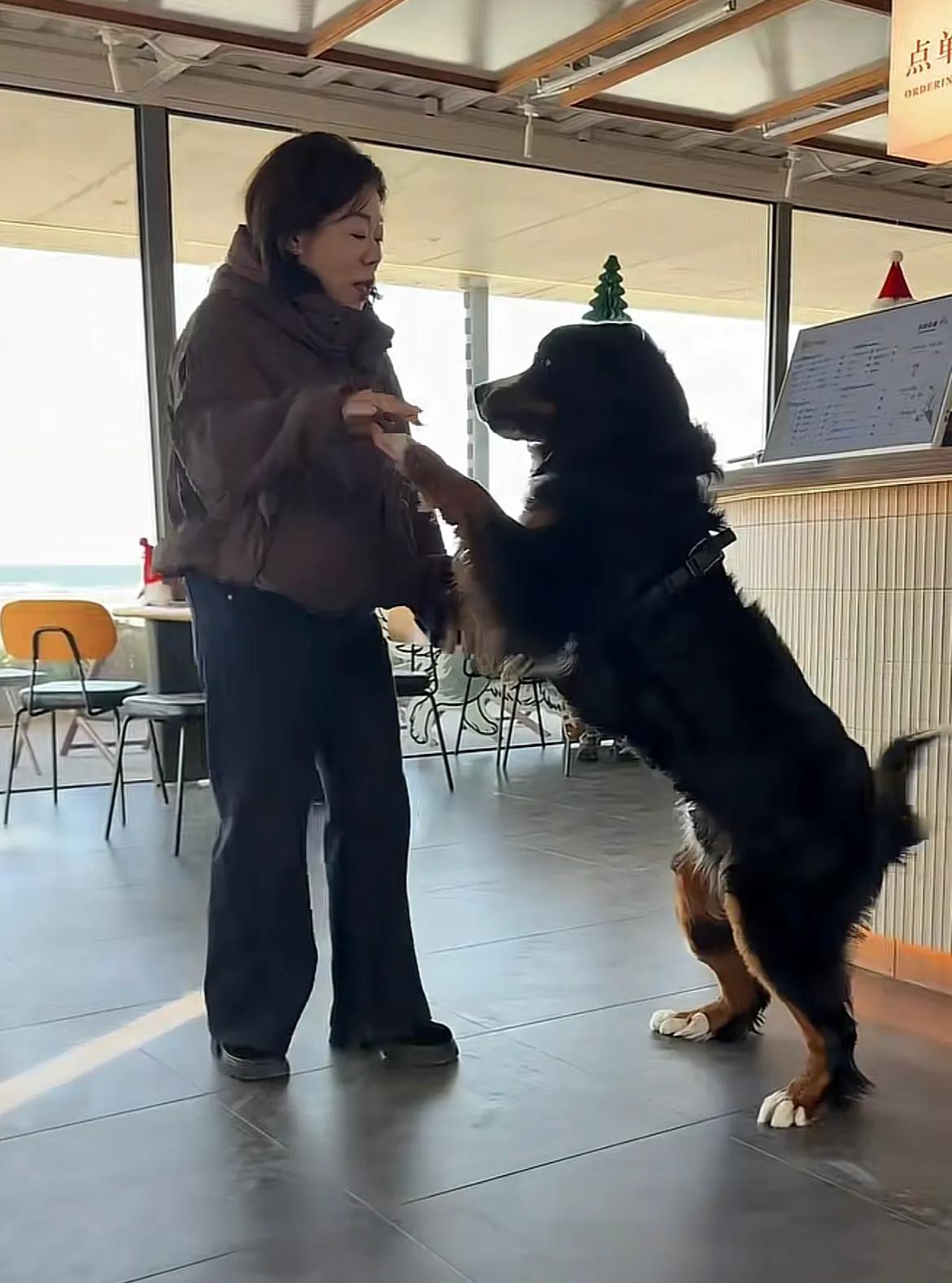 大啾啾已经不是当初走丢时的样子,变得又高又壮,毛发又黑又亮,但是眼神依旧清澈,一看就是一个被保护得很好的毛孩子。