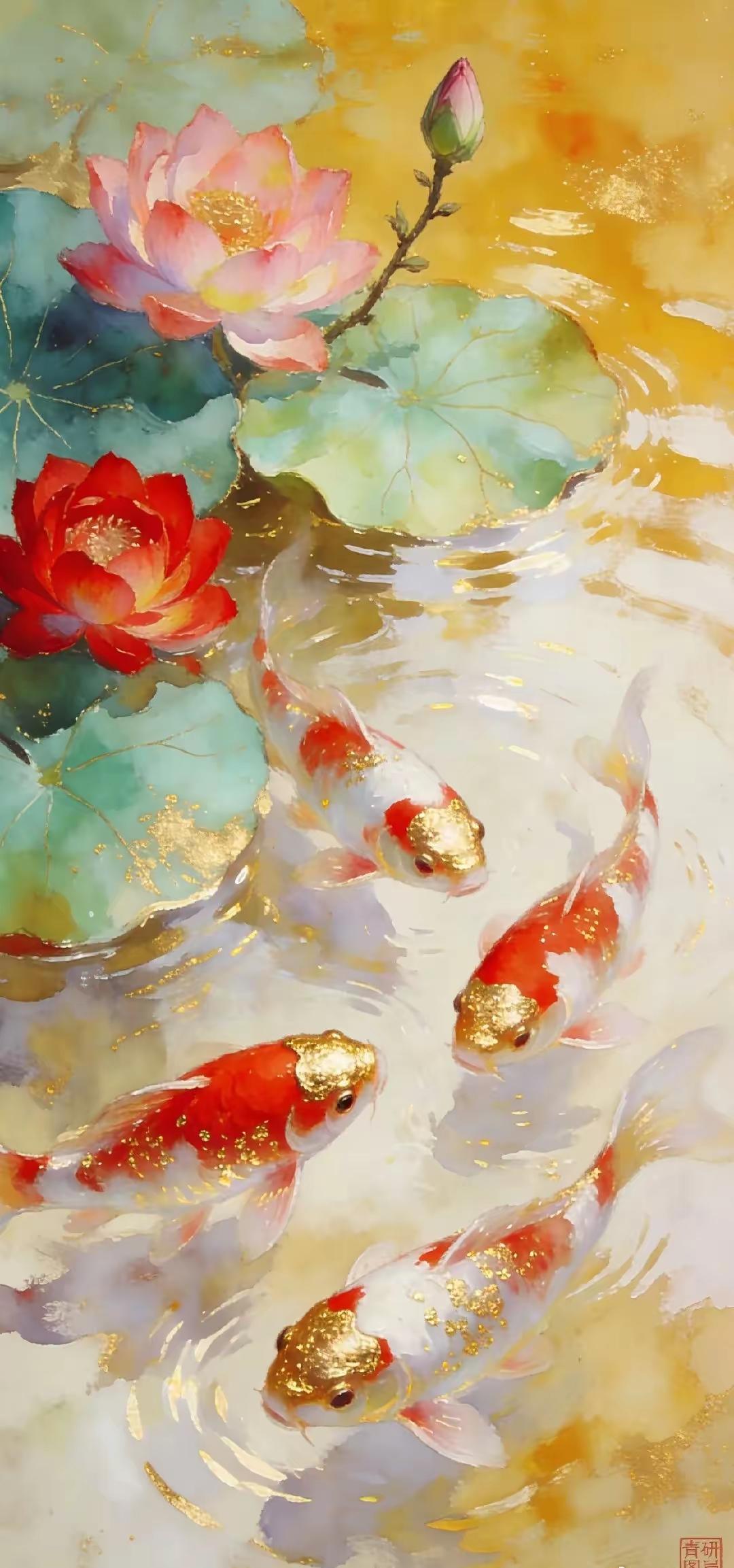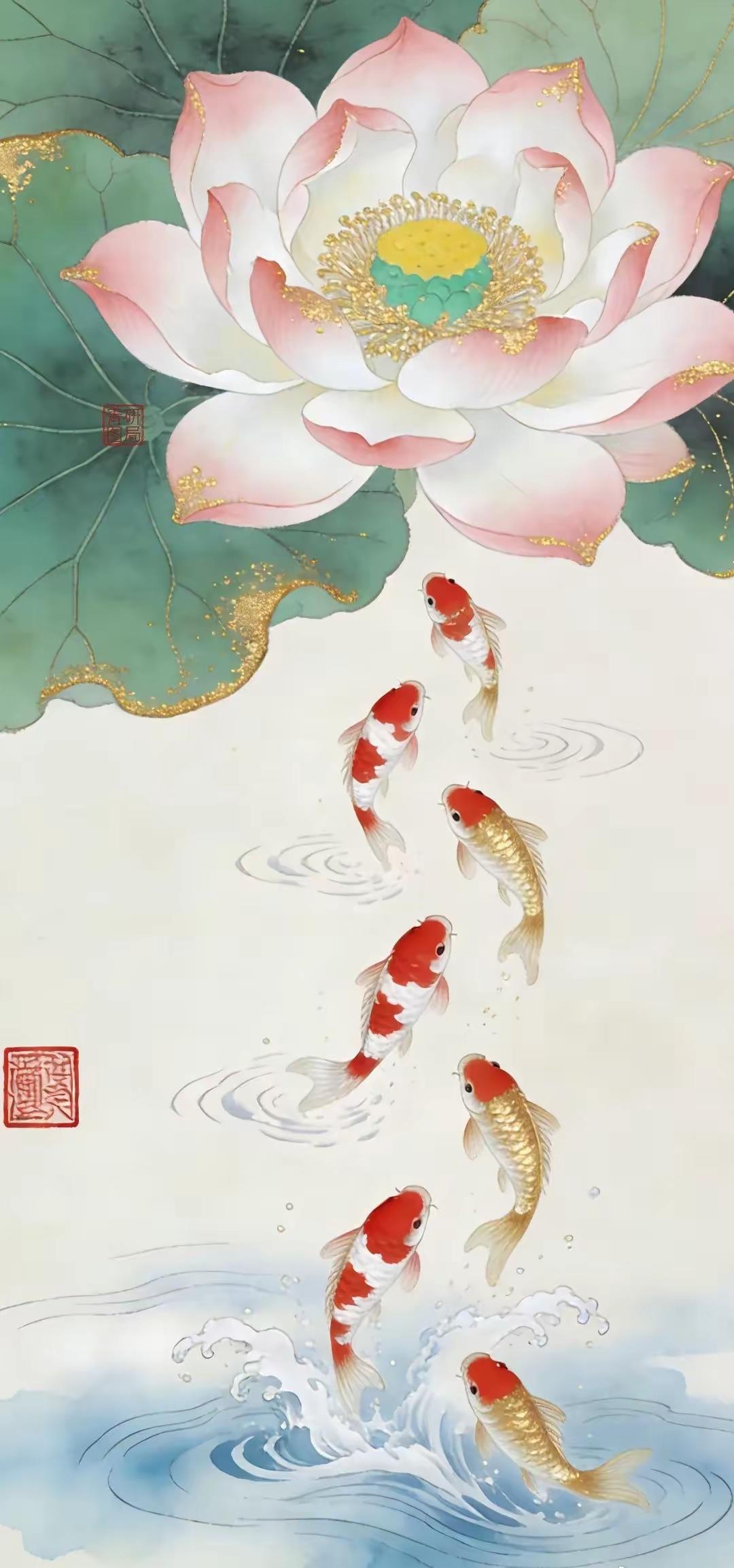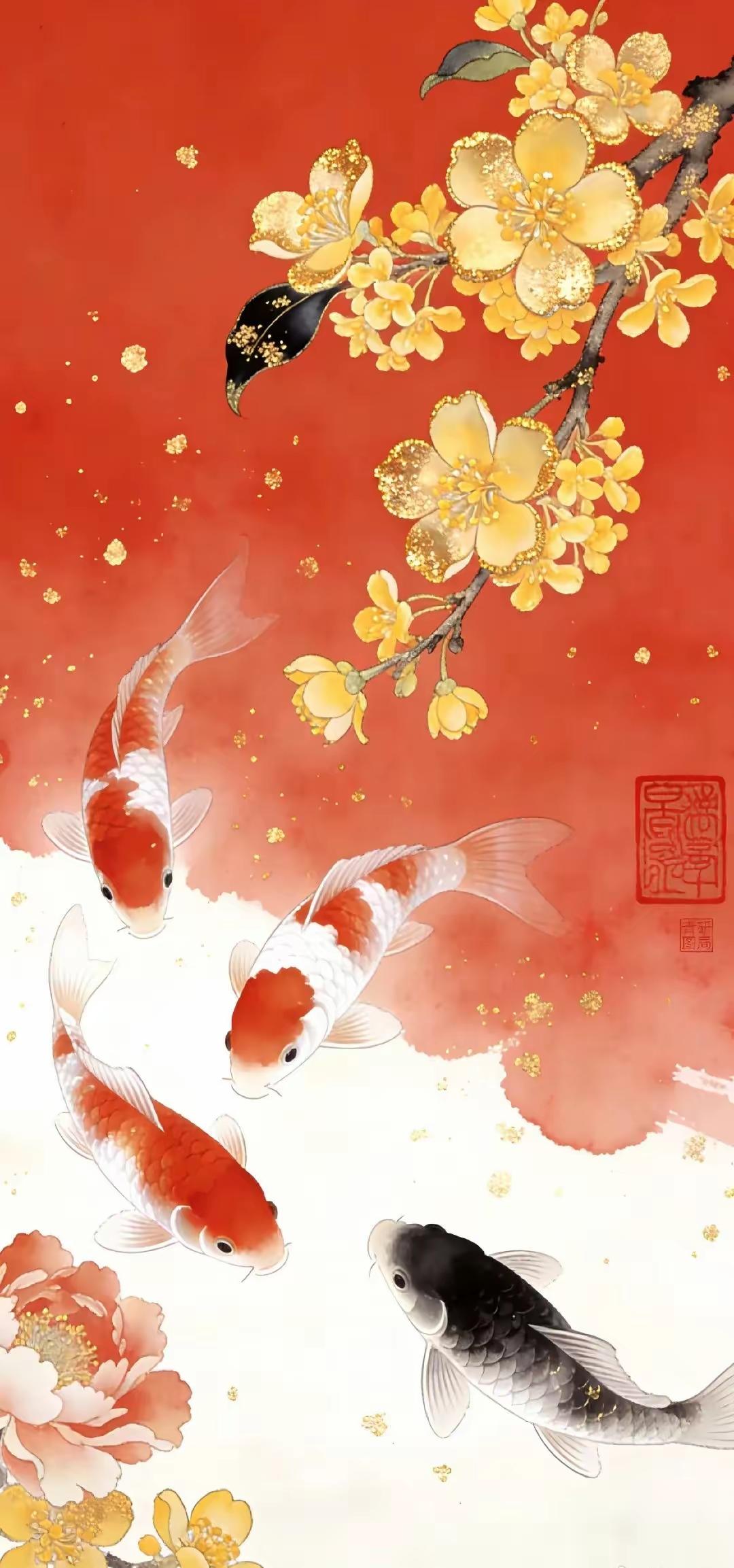 手机壁纸~锦鲤跃水,金桂飘香,红运当头。 一池祥瑞,满幅吉光,愿往后岁岁年年,好运常伴,万事顺意,福暖四季