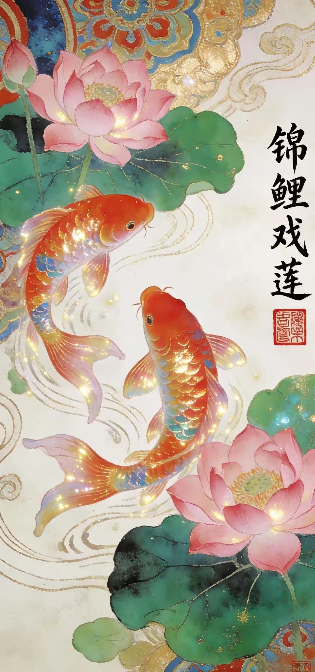手机壁纸~锦鲤跃水,金桂飘香,红运当头。 一池祥瑞,满幅吉光,愿往后岁岁年年,好