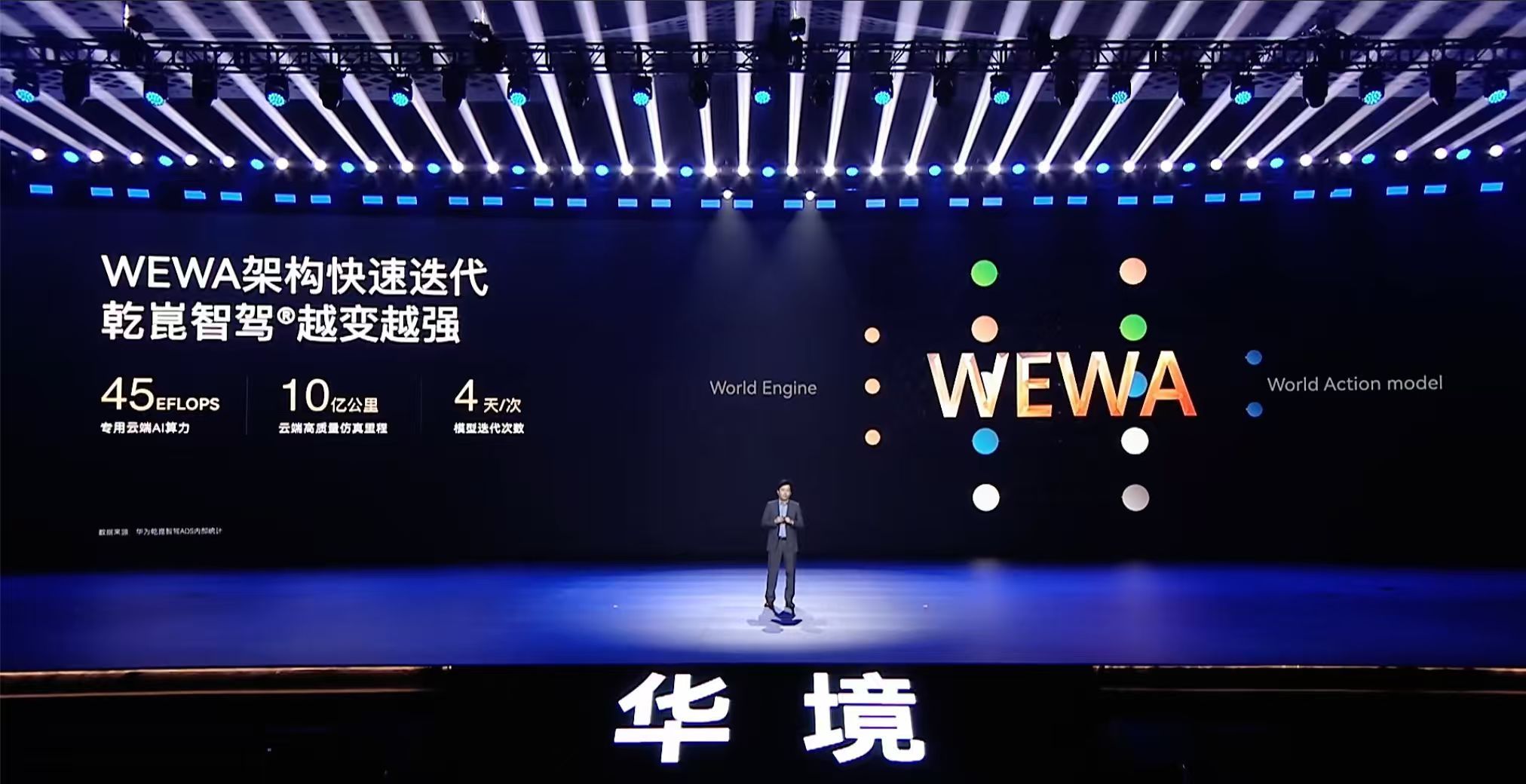 华境S全系标配华为乾崑 华境S搭载的华为乾崑智驾ADS Pro,用的不是阉割版,是跟高阶版同源的WEWA架构。简单说就是云端+车端同时干活,云端算力45 EFLOPS,训练里程超过10亿公里。这意思就是,这套智驾不是出厂就定型的,而是在不断进化。你开得越多,它学得越多,理论上应该越开越好用。当然,数据说话:95.6亿公里的辅助驾驶里程,94.8%的活跃用户占比。至少说明一点——用的人确实多,而且用得下去。智驾最后还是得看实际体验。等有机会试驾了,再跟你们细聊。