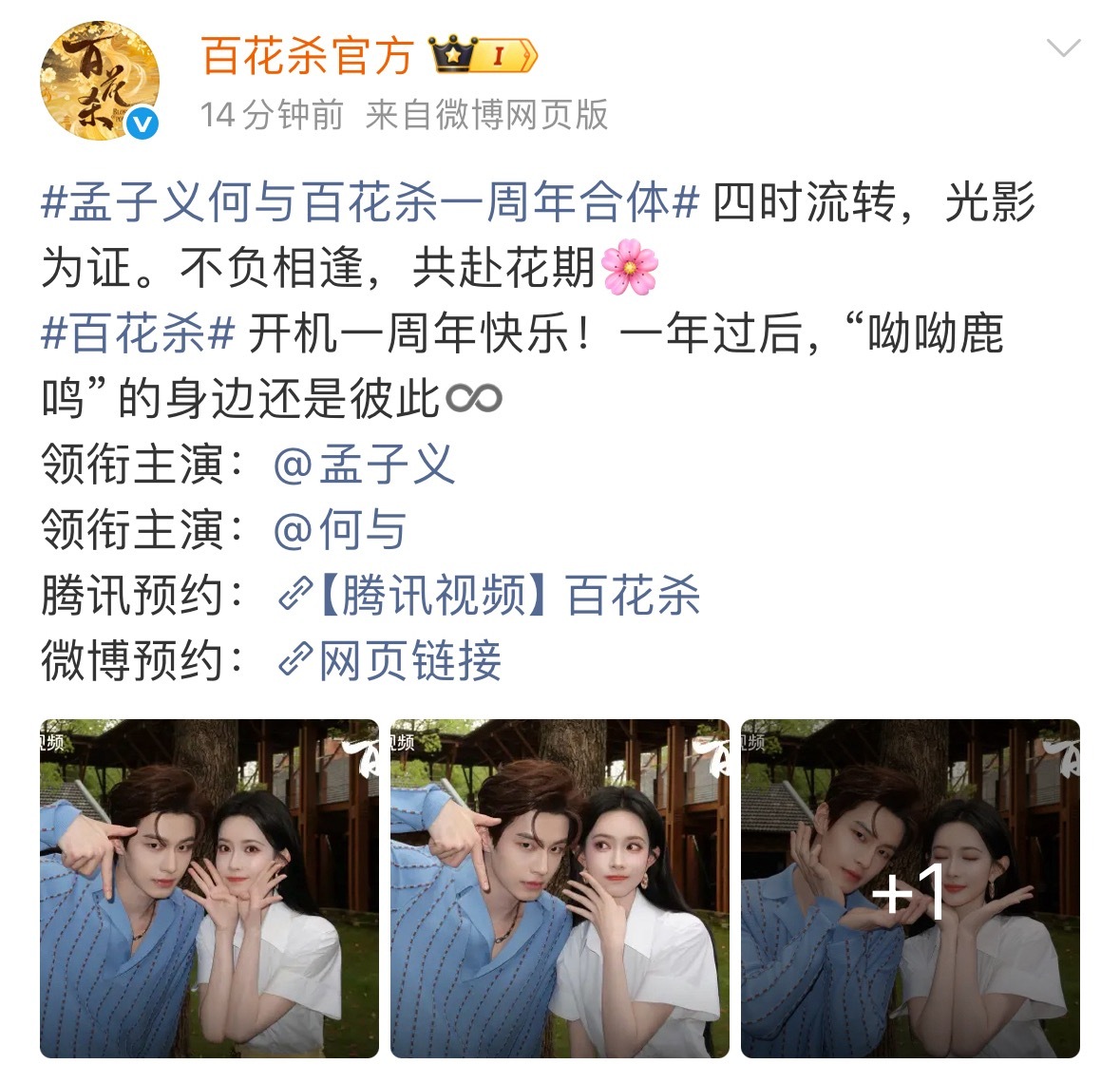 孟子义何与百花杀一周年合体,这部剧快的话5月播出诶,孟子义和何与的二搭奉上,期待吗?