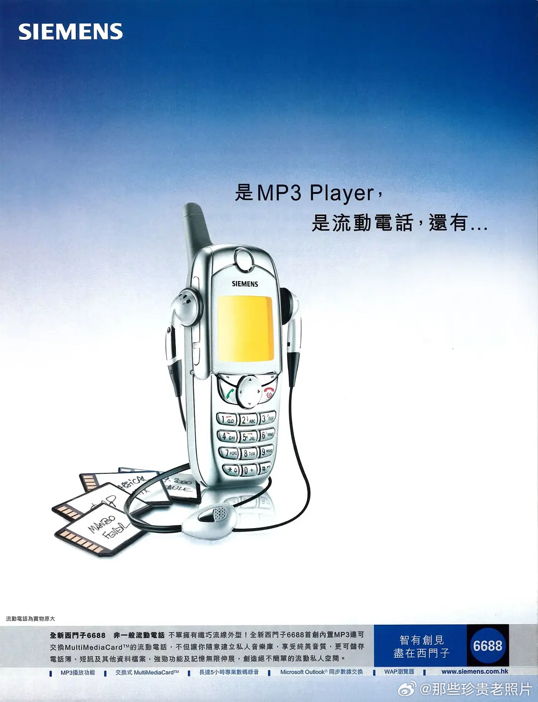 这是一张2000年代初西门子6688手机的繁体中文广告海报,是当年功能机时代“多媒体手机”的经典宣传物料,我们来拆解它的信息和时代背景: