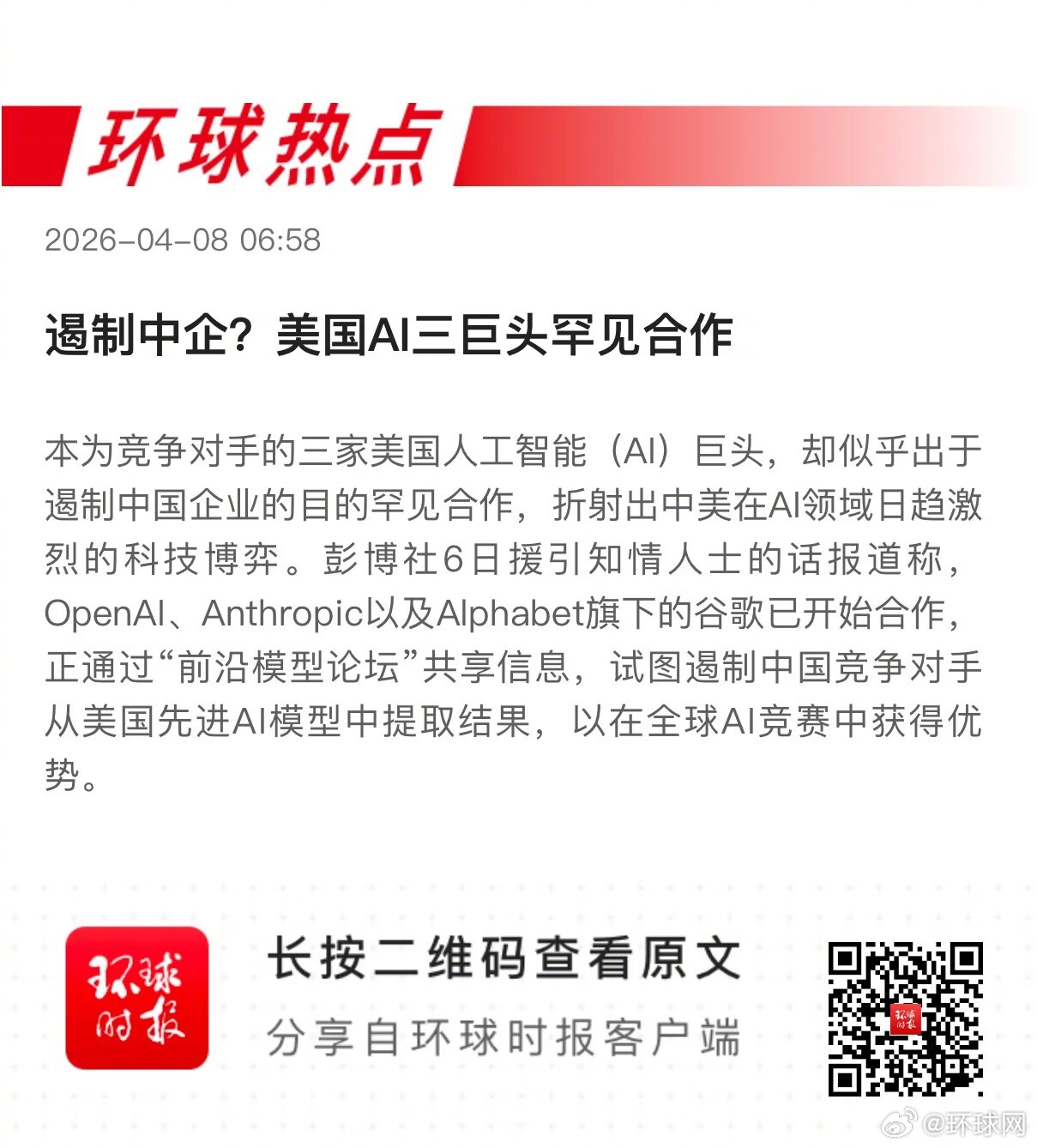 ▲ #美国AI三巨头罕见合作为遏制中企#