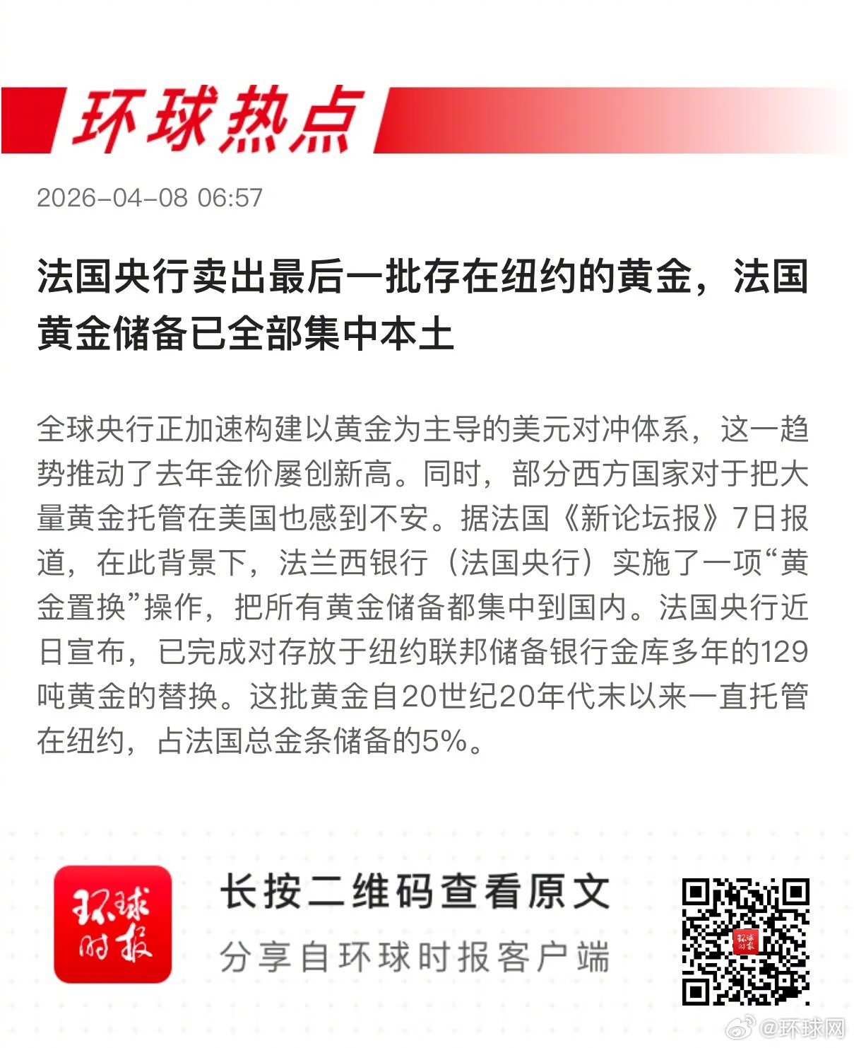 ▲ #法央行卖出最后一批存在纽约的黄金#