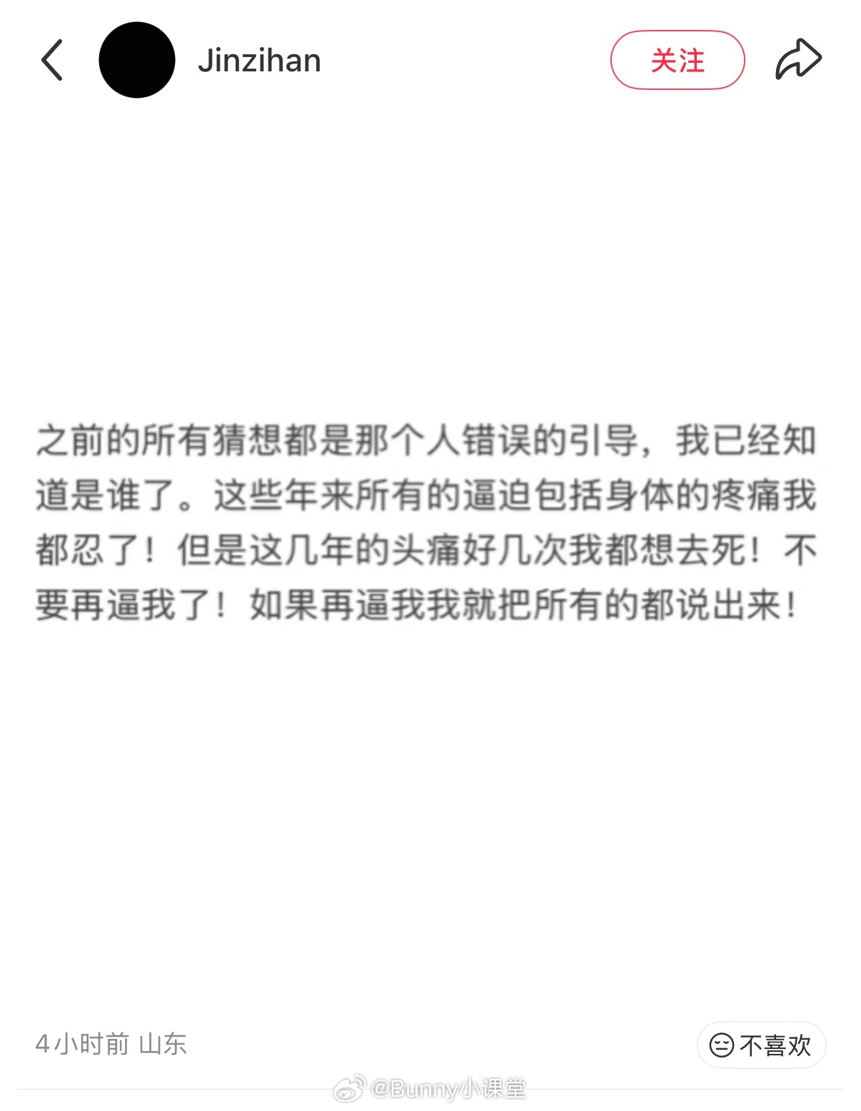 金子涵突然发文:不要再逼我了!如果再逼我,我就把所有的都说出来!