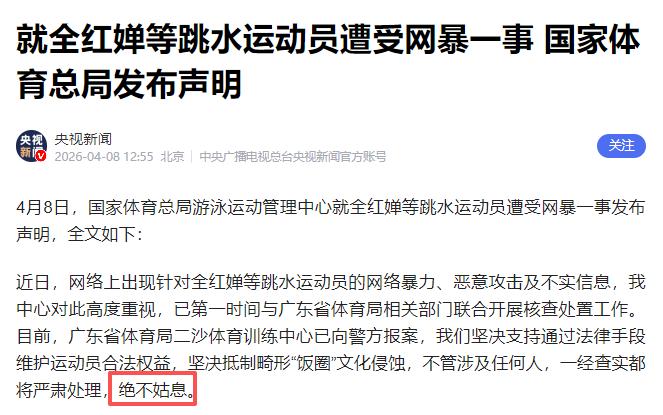 真不敢想象,全红婵这些年经历的网暴,居然是有组织有预谋的。 人家就是专门挑她拉踩,让她名誉受损心态崩塌,看到她哭她崩溃就开心。 更炸裂的是,全红婵在镜头前声泪俱下,恳求网暴者要骂只骂她,不要骂她的朋友时,有些朋友居然就藏在这些网暴者中间。 这次被香港商报曝光的,是一个名为“水花征服者联盟”的微信群,群内成员足足有282人。 让人脊背发凉的是,这个群的群公告里,白纸黑字写着“禁止攻击其他运动员(全红婵除外)”,甚至公然纵容群成员对全红婵使用多个侮辱性绰号。 从2022年至今,整整四年时间里,这个群里的人日复一日地对全红婵进行人身攻击、恶意抹黑、无底线造谣,从她的身材样貌,到她的家人朋友,再到她的训练比赛,没有一处能逃过这群人的恶意。 更让人不寒而栗的是,这个群里并非只有素不相识的陌生网友,还有多位跳水界的业内人士混迹其中,包括运动员、教练、专项记者甚至裁判。 这也就解释了,为什么全红婵在镜头前哽咽着说,自己怕连累朋友,连跟人亲近都不敢。 她拼尽全力想要保护的人,转头就可能躲在匿名的屏幕后,和其他人一起对她恶语相向。这种来自身边人的背叛,比陌生人的谩骂更伤人,也更让人绝望。 很多人都忘了,今年的全红婵,也才刚刚19岁。 14岁那年,她在东京奥运会上用五跳三满分的“水花消失术”一战封神,成为中国最年轻的奥运三金王,让全世界看到了中国跳水的实力。 从农村走出来的她,没有背景,没有炒作,把所有的青春和汗水都砸在了十米跳台上。拿到奖金第一件事,是想着给家人治病;站上国际赛场,拼尽全力只为让五星红旗升起。 她从来没有对不起任何人,却要在最该肆意成长的年纪,承受着铺天盖地的恶意。 巴黎奥运会后,她迎来了女子跳台运动员最难熬的发育关,身高体重的自然增长,让她的技术动作面临前所未有的挑战。 为了控制体重,她每天只吃一顿饭,饿到说自己“快嘎了”,喝水都怕增重,不敢上秤、不敢照镜子,夜夜做从跳台摔下的噩梦,甚至一度萌生退役的念头。 可即便她已经拼到了极致,网上的嘲讽和谩骂从来没有停止过。 “胖了”“不自律”“天才陨落”,这些轻飘飘的字眼,像一把把刀子扎在她身上。她在赛场上的所有努力,都被这些恶意一笔勾销。 很多人以为,在网上躲在匿名账号后面骂人,不用付出任何代价。 但事实上,这场有组织的网暴,早已越过了道德的底线,更是触碰了法律的红线。 根据国家法律,在信息网络上肆意谩骂、恶意诋毁他人,公然侮辱他人情节严重的,将以侮辱罪定罪处罚;捏造事实贬损他人人格、损害他人名誉的,将以诽谤罪定罪处罚。 而专门设立用于实施网暴的通讯群组,组织多人长期实施辱骂、诽谤行为,还可能涉嫌非法利用信息网络罪,最高可面临三年有期徒刑。 截至目前,网信部门在整治体育饭圈乱象的行动中,已经清理涉运动员网暴违法违规信息160万余条,处置相关账号7.6万个,关闭账号3767个。 但对于这个专门针对全红婵的网暴群,仅仅解散群聊远远不够,群内的组织者、长期实施辱骂诽谤行为的人,都该为自己的行为付出应有的法律代价。 事件曝光后,人民日报、央视新闻、新华社等多家央媒集体发声,为全红婵撑腰。 人民日报锐评“警惕体育饭圈,拒绝捧杀棒杀”,明确指出运动员不是流量工具,健康比奖牌更重要。 央视新闻更是直接喊话一经查实绝不姑息。 国家体育总局也早已明确表态,将大力整治体育“饭圈”乱象,让体育回归纯粹。 因为这场针对全红婵的有组织网暴,伤害的从来不止她一个人。 当为国争光的运动员,要把大量的精力用来应付无孔不入的恶意,当努力拼搏的少年,要在镜头前哭着求饶才能换来一点喘息,这不仅是对运动员个人的伤害,更是对整个体育圈生态的破坏,是对体育精神的亵渎。 更值得警惕的是,这种有组织、有预谋地抹黑国家队顶尖运动员的行为,背后是否有更深层次的推手,是否有境外势力的介入,通过打击我们的体育明星,来消解国家形象、打击民族自信。 网络从来不是法外之地,匿名也不是作恶的挡箭牌。 我们期待相关部门能彻查此事,揪出这场有组织网暴背后的组织者和参与者,依法予以严惩,给全红婵一个公道,也给所有为国争光的运动员一个安全、健康的舆论环境。 全红婵首先是一个鲜活的、正在成长的19岁女孩,其次才是奥运冠军。 她不必活成所有人期待的完美模样,她只需要健康、快乐地站在自己热爱的跳台上,就足够了。 愿所有的恶意都能被严惩,愿所有拼搏的运动员,都能被温柔以待。