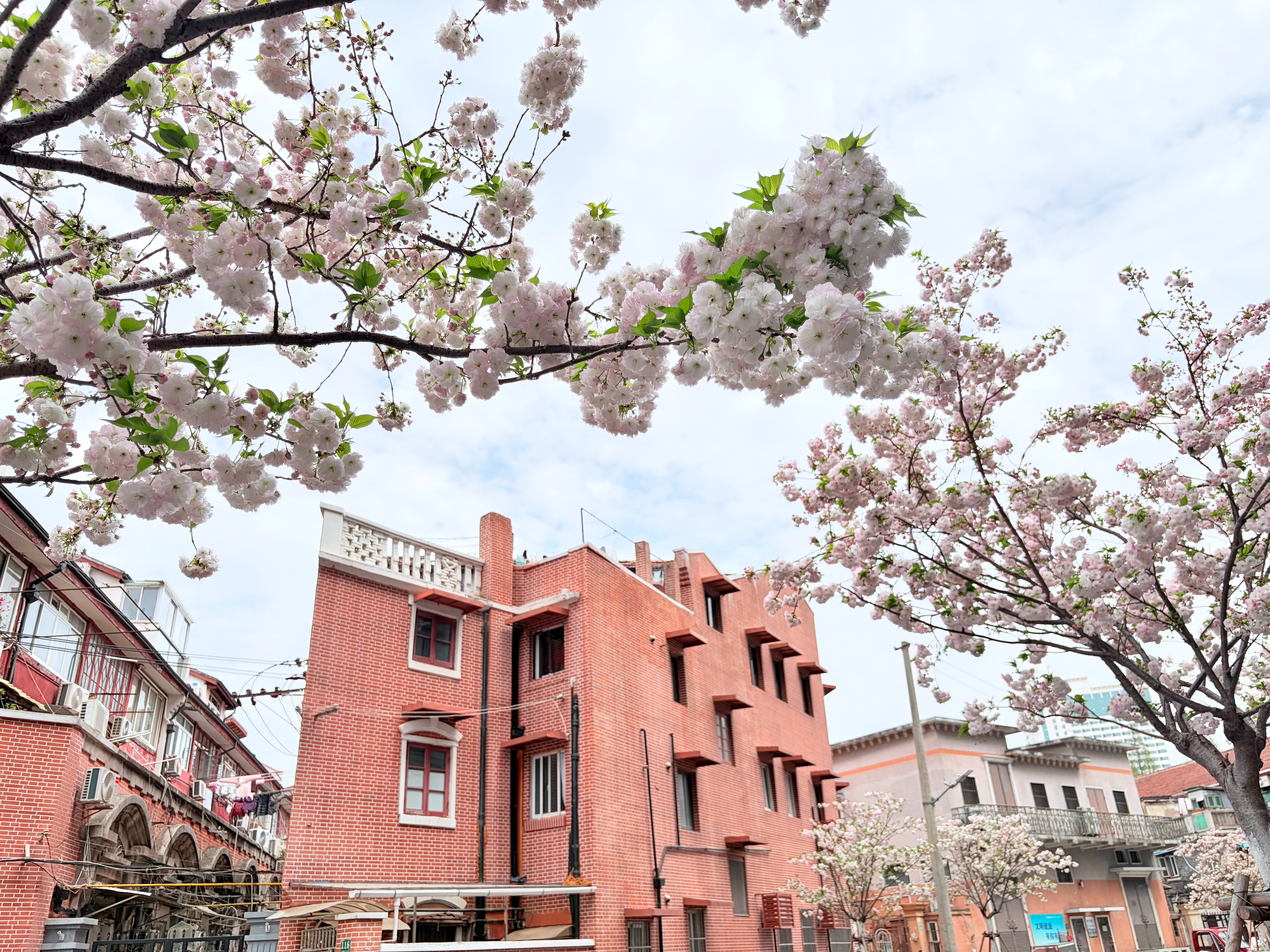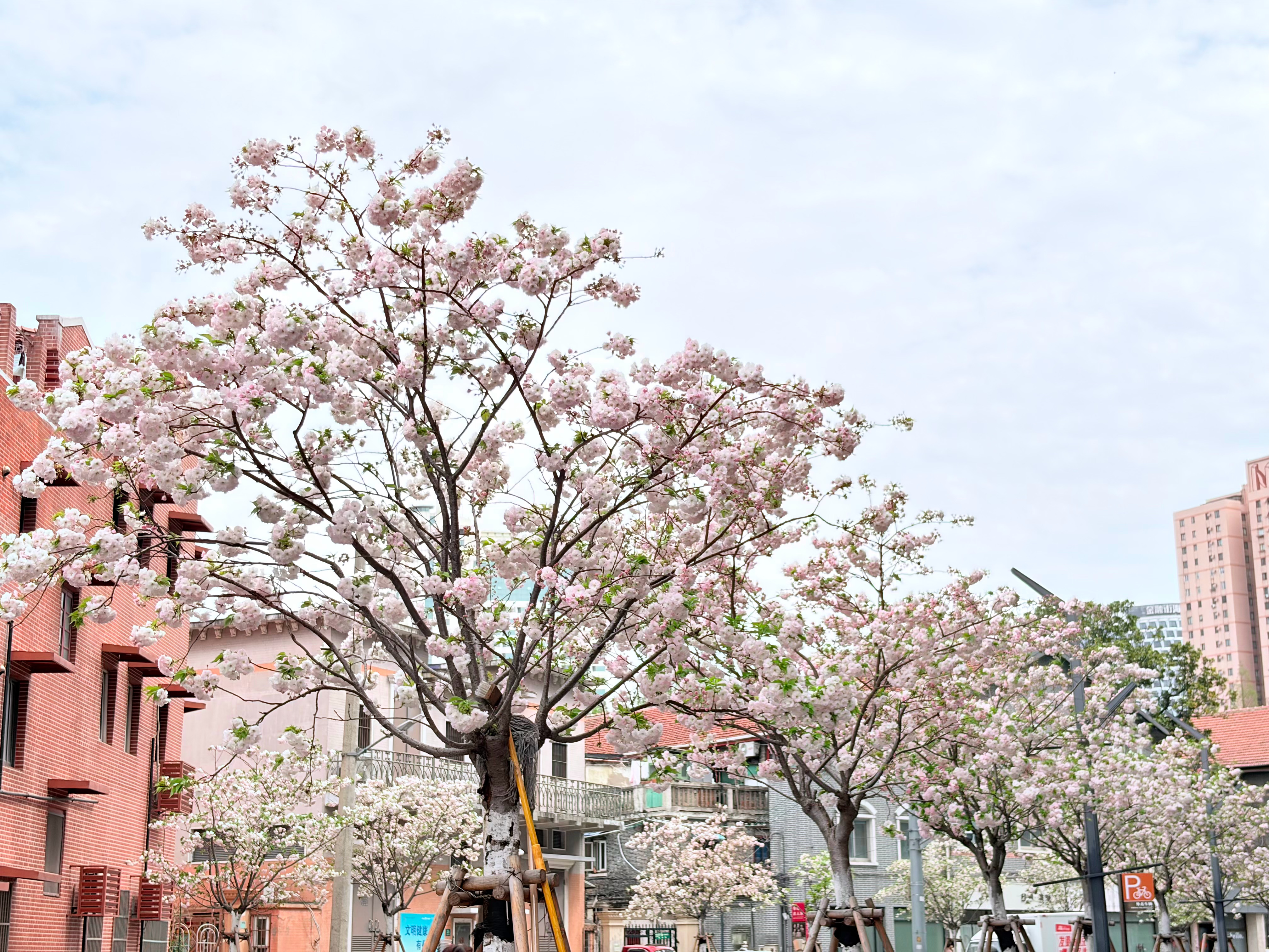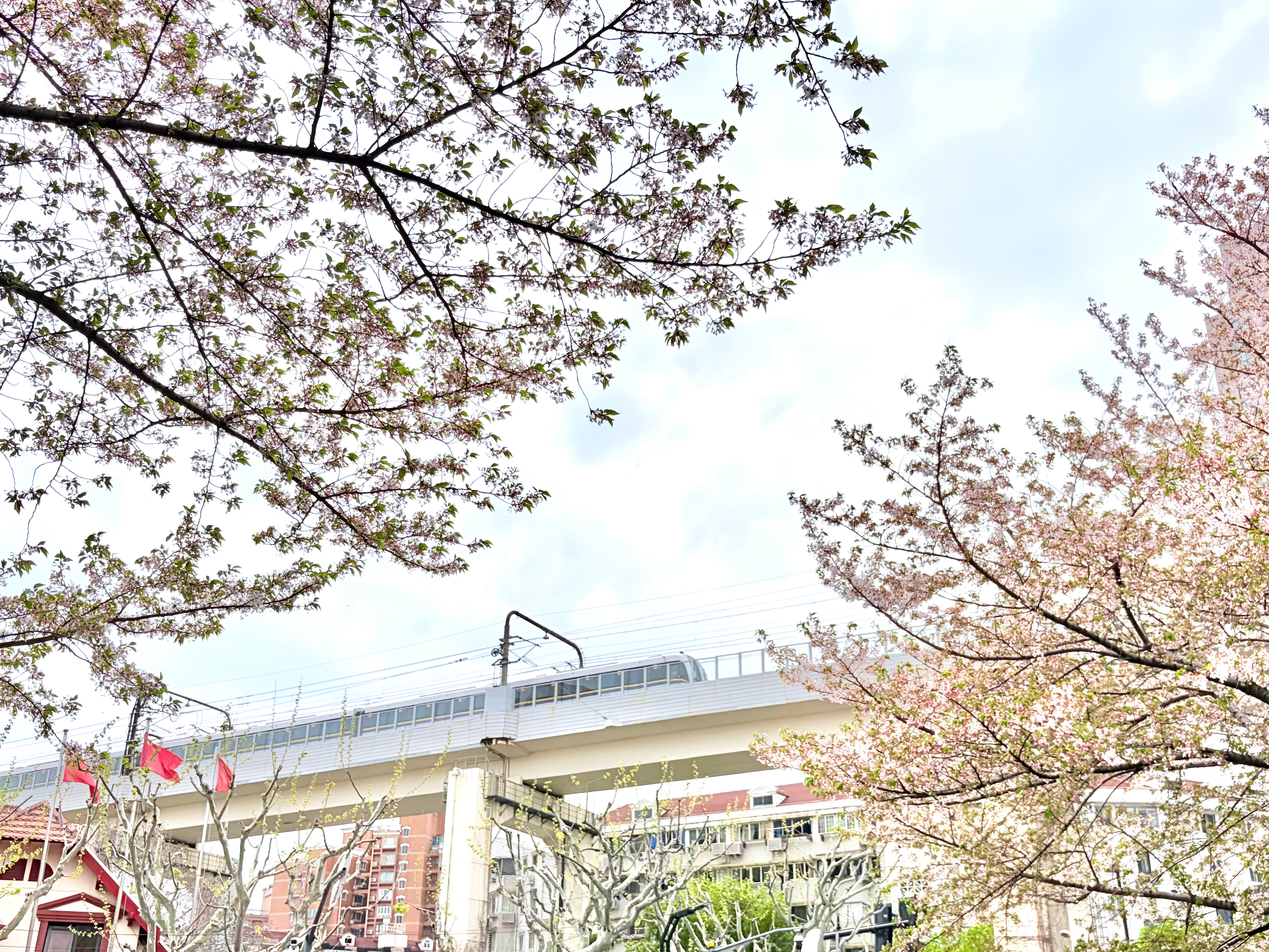 路过网红打卡点拍一张,虹口体育馆附近都是这种白色的花,春天的气息拉满啊~常青的摄