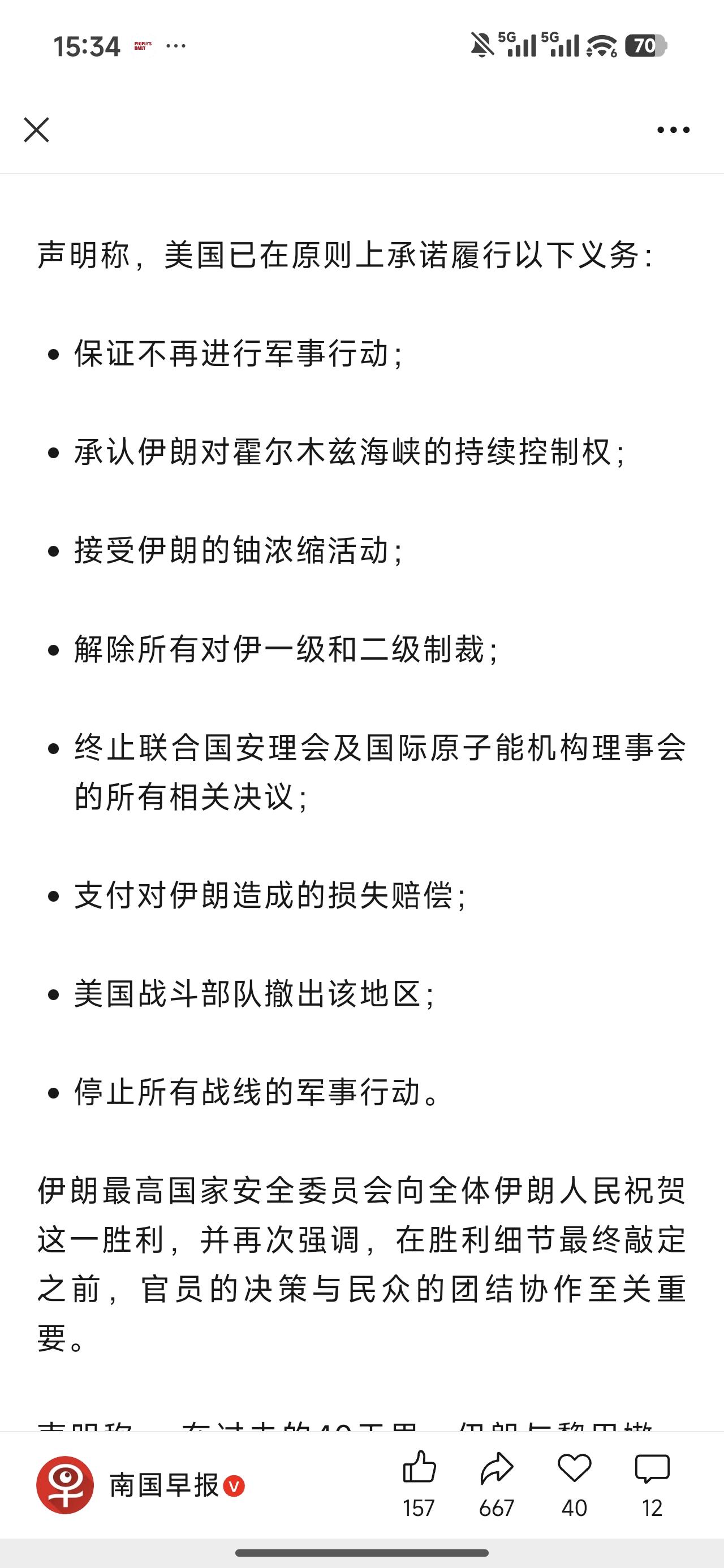 如果美国人真的能按照承诺的去做,那伊朗就确实胜利了。但是鉴于美国人过于狡猾善变,伊朗人在他们身上吃过那么多次亏,这次伊朗还是谨慎乐观为妙!