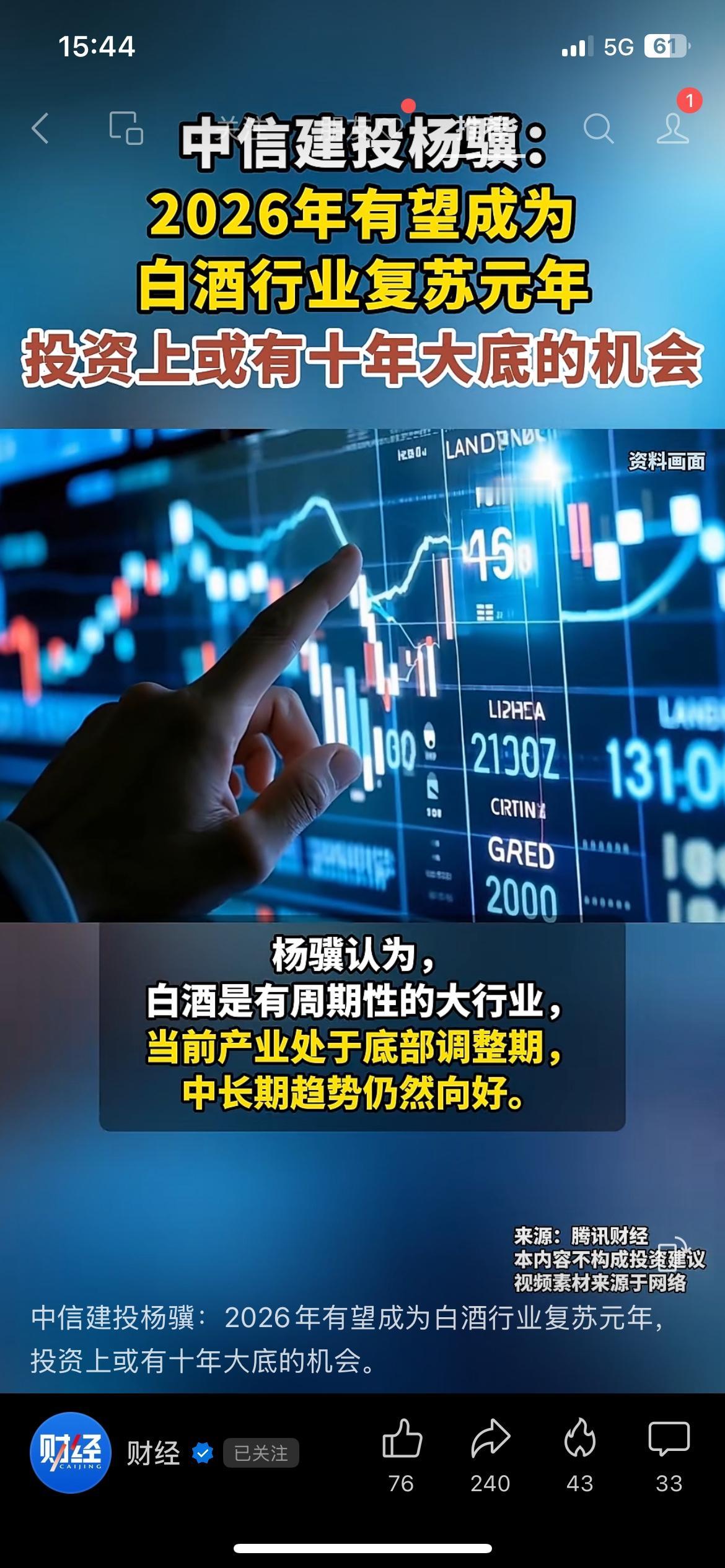 三是中信建投提出,2026年白酒或迎复苏元年,出现十年大底机会,消费板块值得关注。