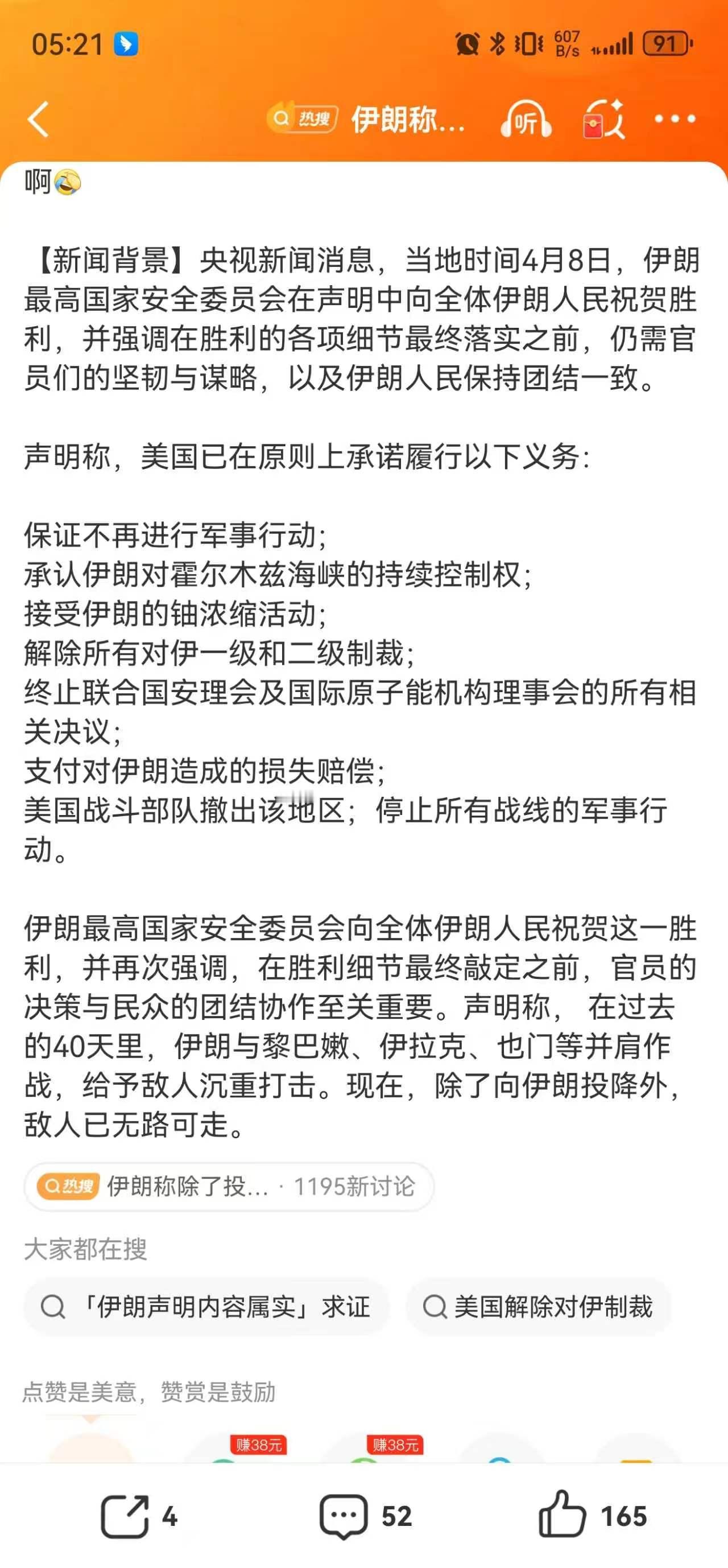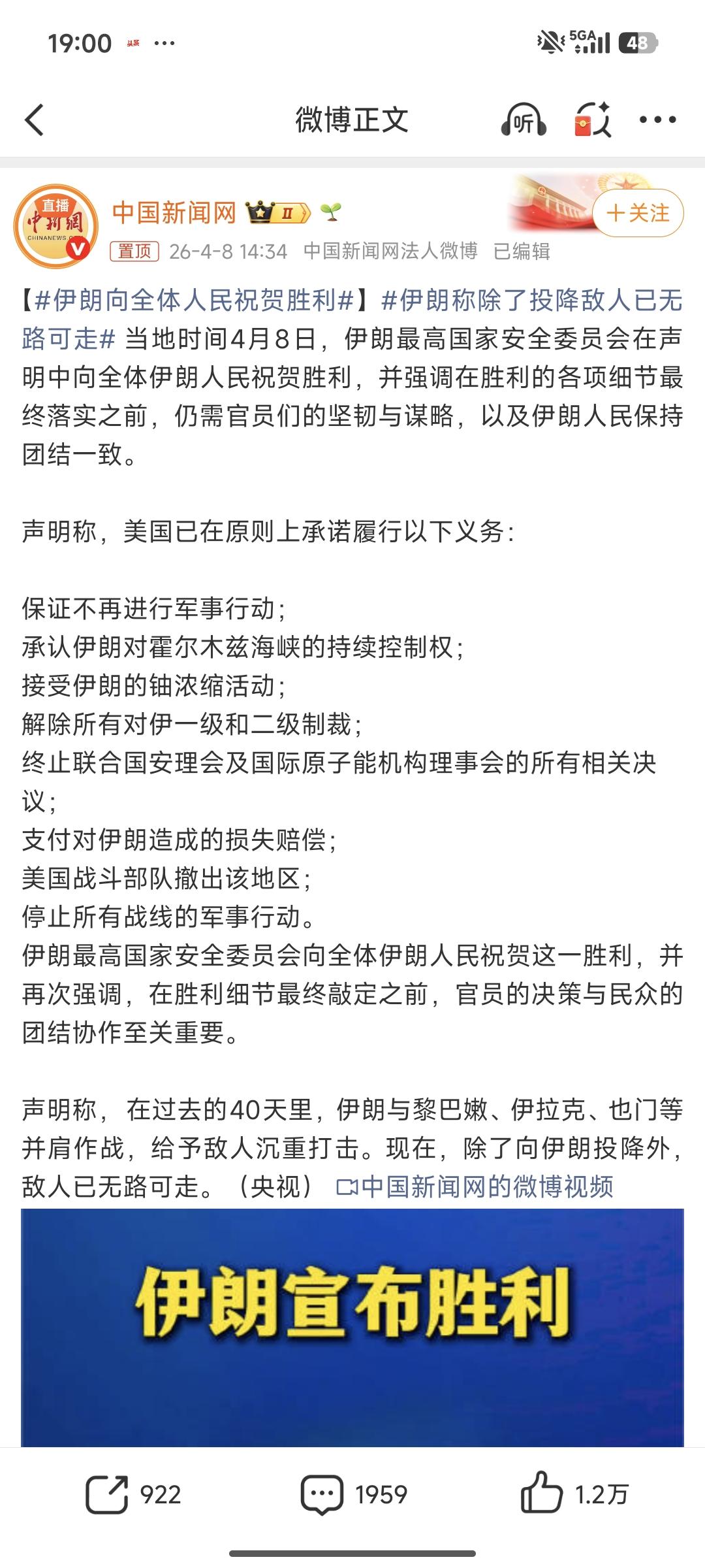 伊朗赢了,赢麻了,彻底麻了! 美以伊战争的“伟大”之处在于,参战各方都表示自己