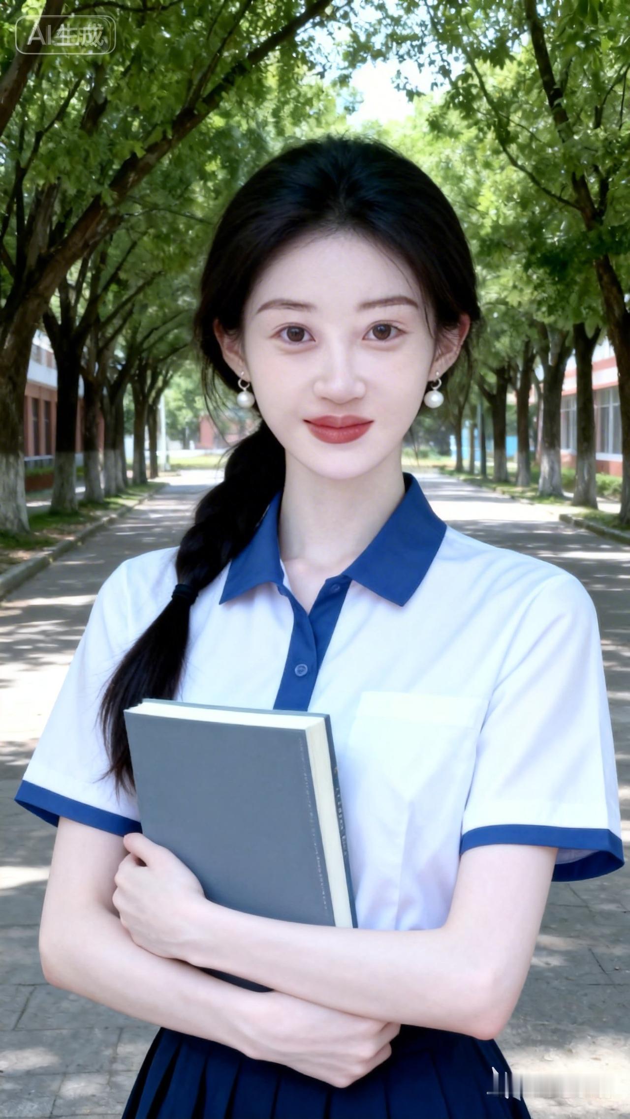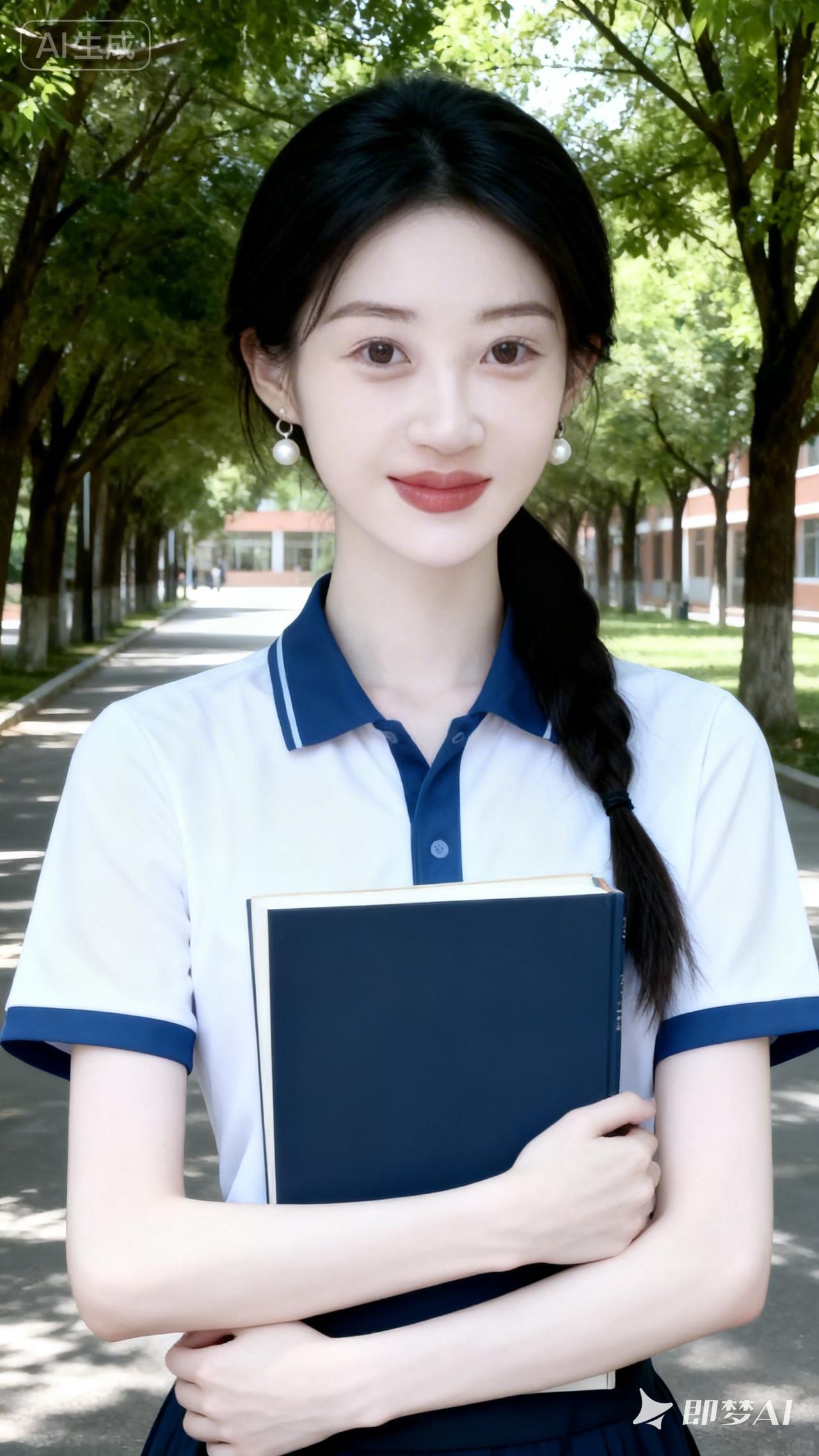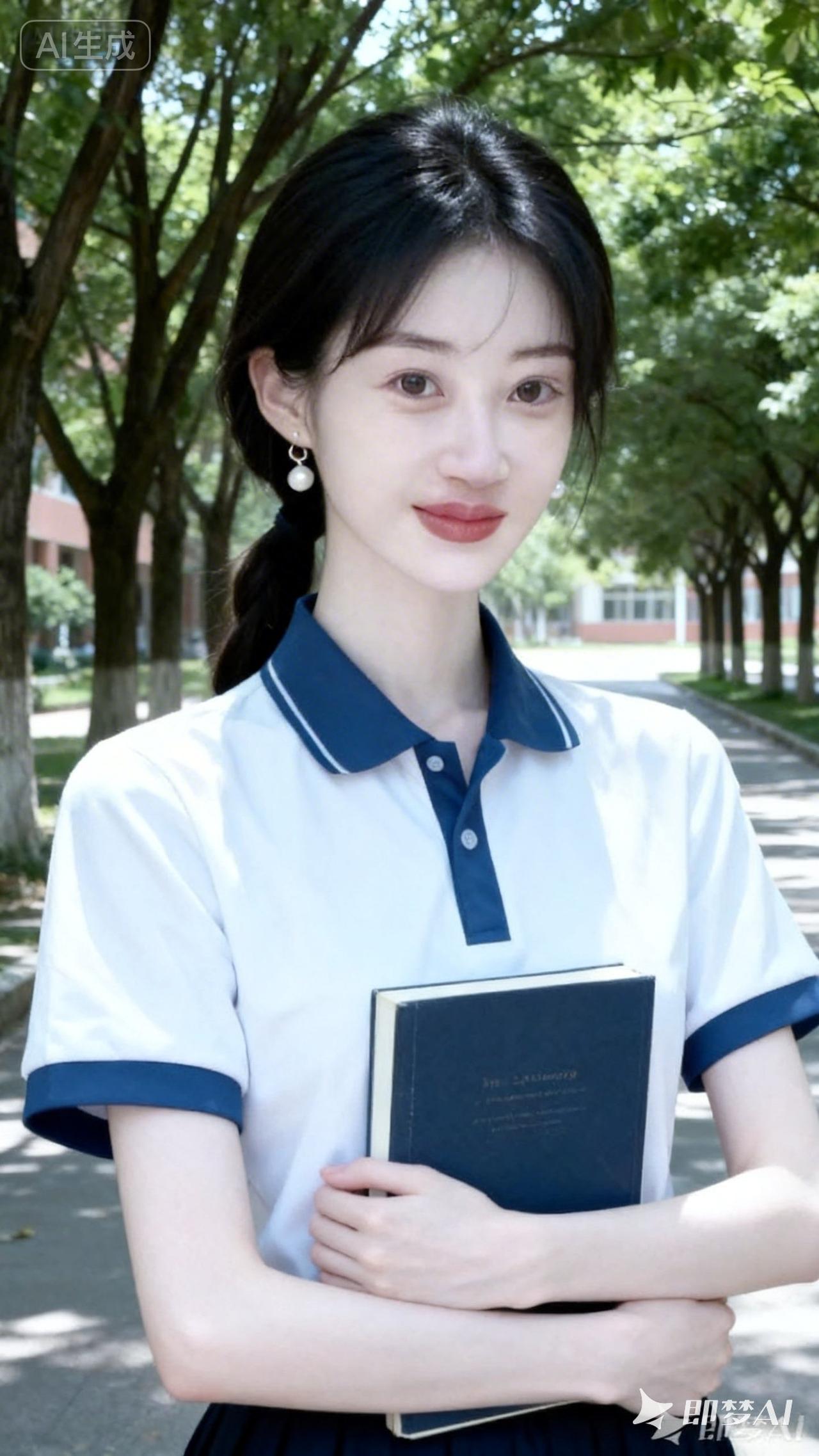 青春校园风,少女手捧书,静待花开时。