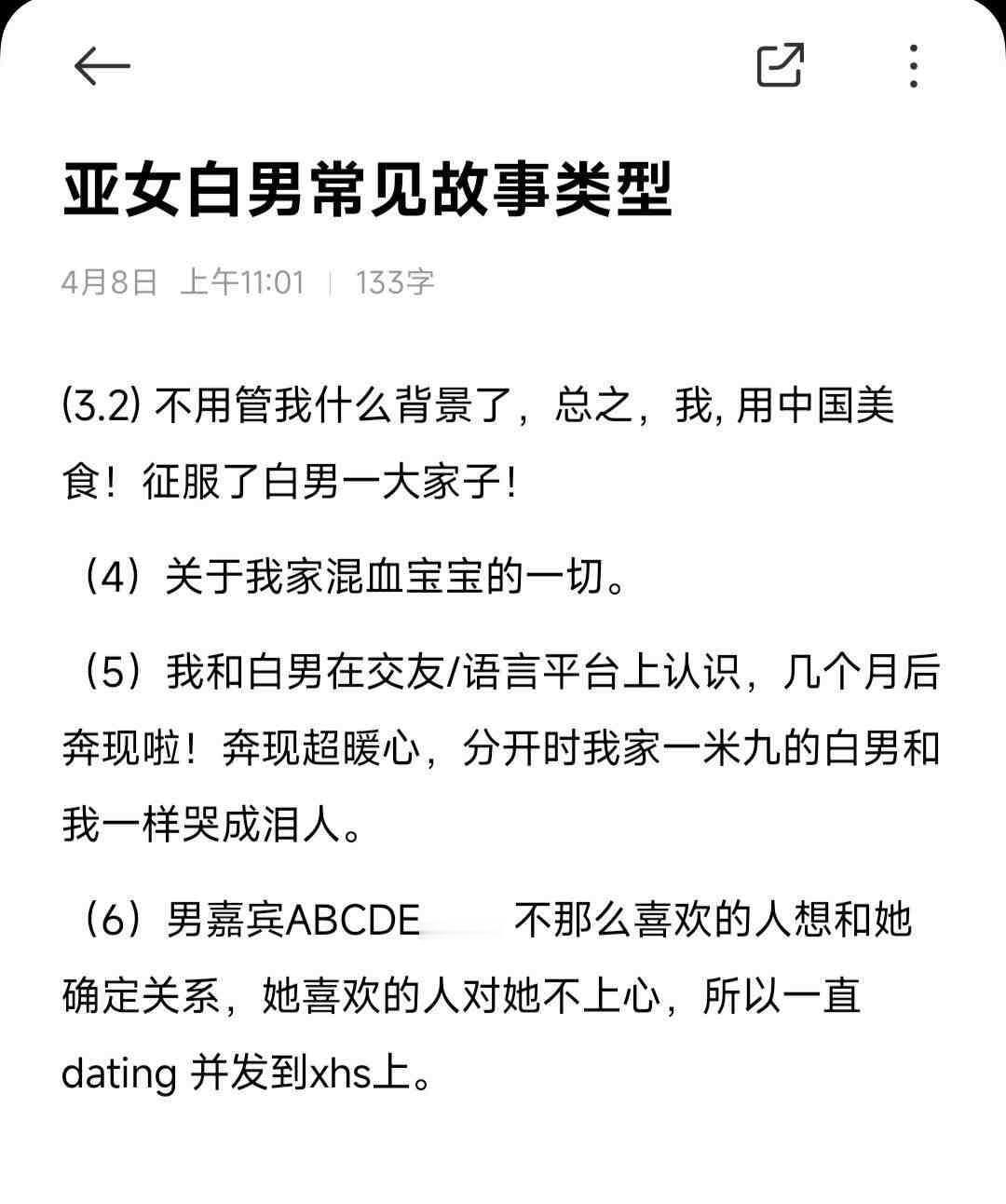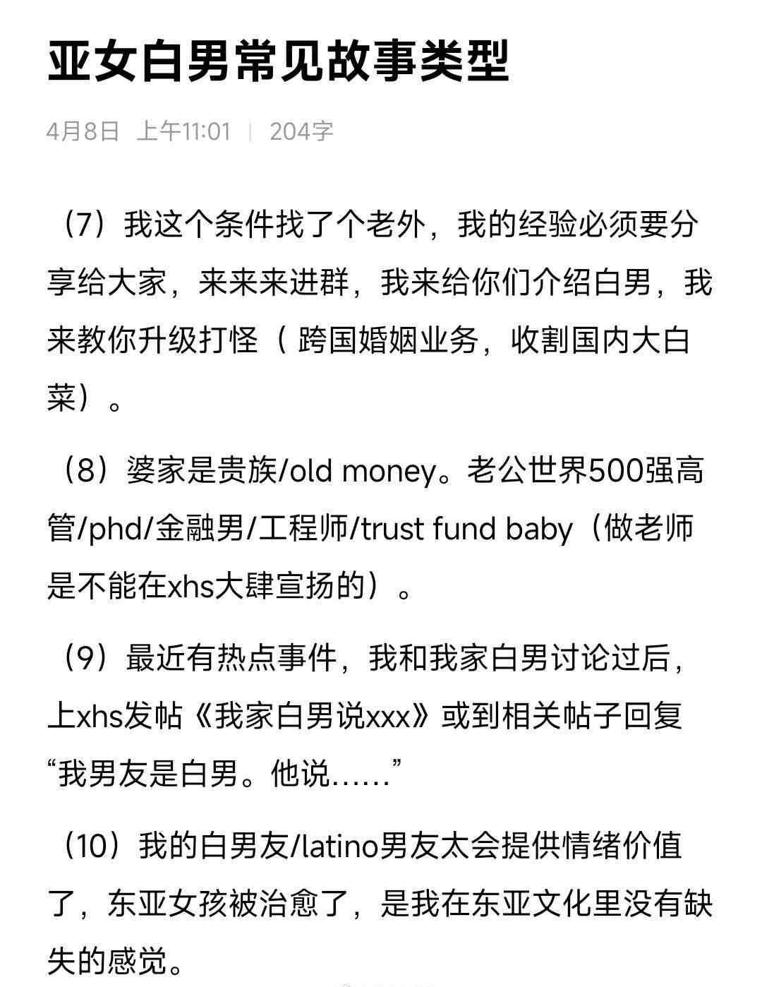 网上女留学生date白男常见故事类型。谁总结的,真的是这样吗?切勿对号入座!